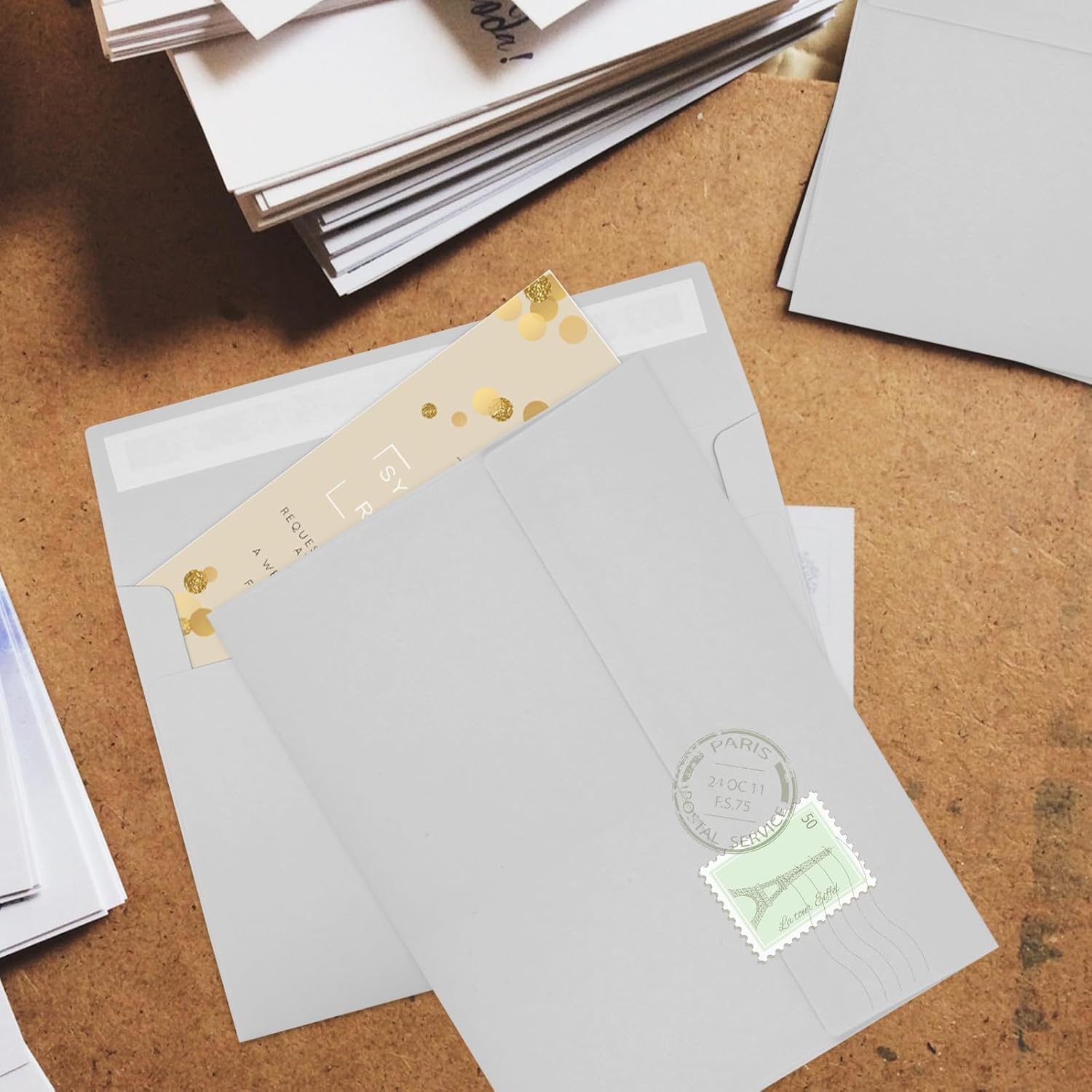 50 Packs 5x7 Dark Gray Envelope, Gray Envelopes 5x7, Dark Gray Invitation Envelope, Envelopes Self Seal for Weddings, Invitations, Photos, Greeting Cards, Mailing (Light grey)