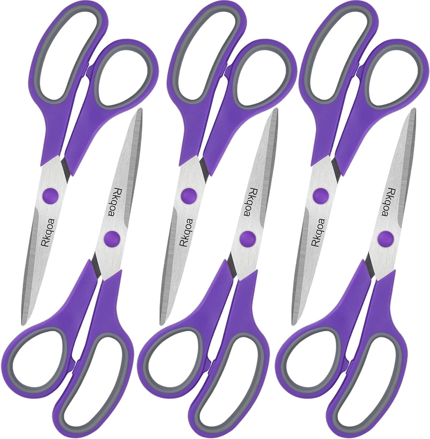 Purple Scissors Pack, Rkqoa 8" Scissors All Purpose - Comfort-Grip Sharp Shears for Office School Sewing Fabric Craft Art Supplies, Teacher/Class Everyday use, Classroom Must have