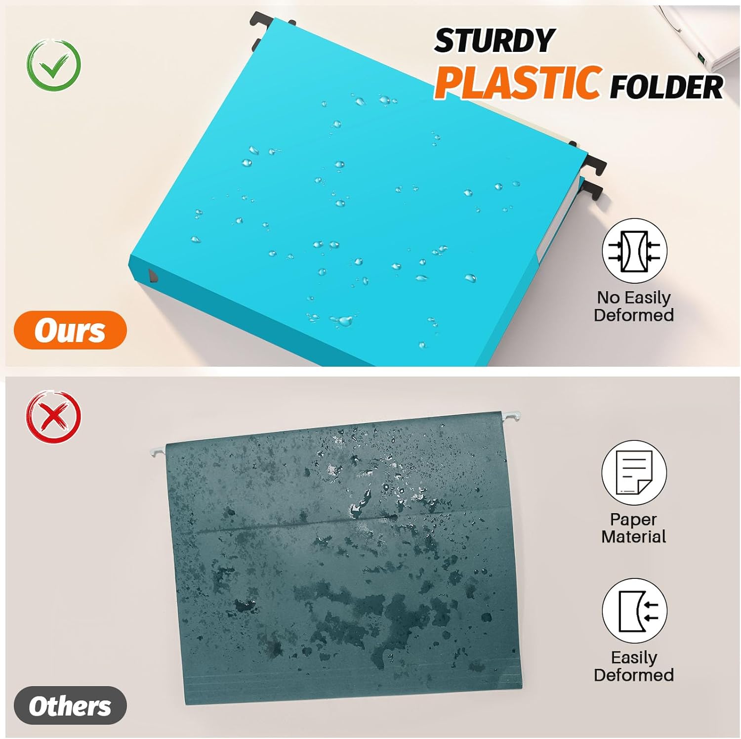 - [PLASTIC HANGING FILE FOLDER] The file cabinet folders hanging is made of PP plastic, durable and tear resistant, not easily dirty, and has a longer usage time compared to paper materials.