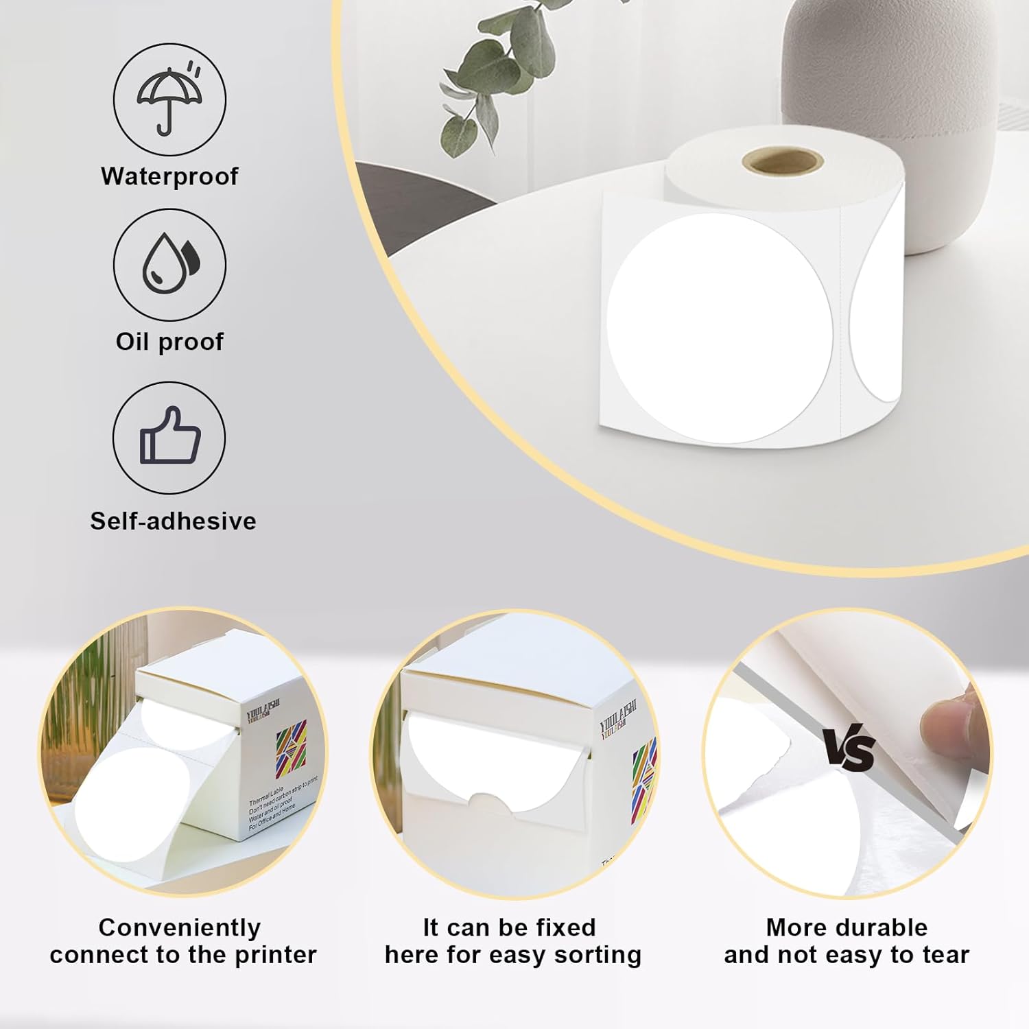 - Durable and Reliable: 3 inch thermal labels are made of heat-sensitive material, waterproof and oil-proof, and will not tear. With high quality and standing-out looks, these circle sticker labels will get all your projects remarked