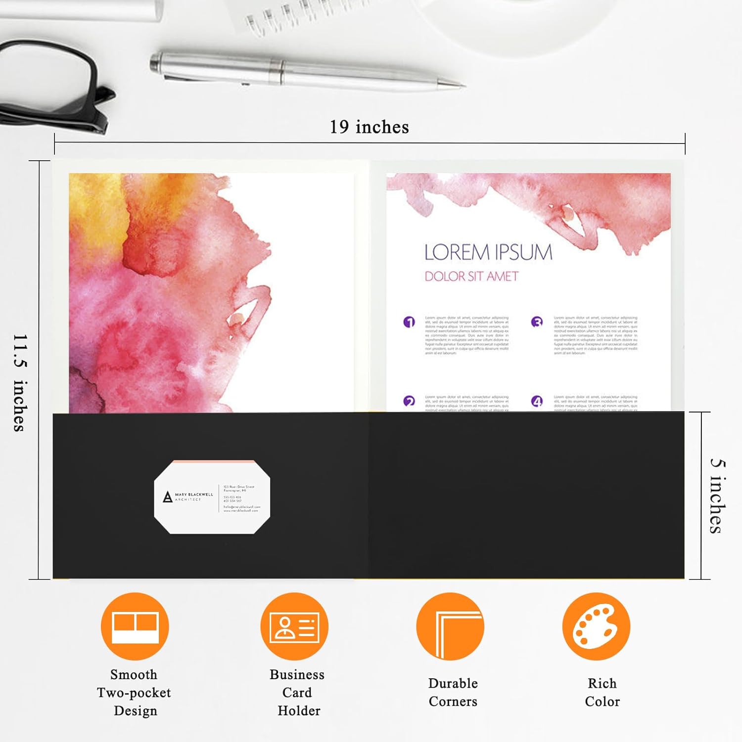 25Pcs Black Two-Pocket Heavyweight File Folder,Letter Size,Paper File Folder for School Office Home Bussines