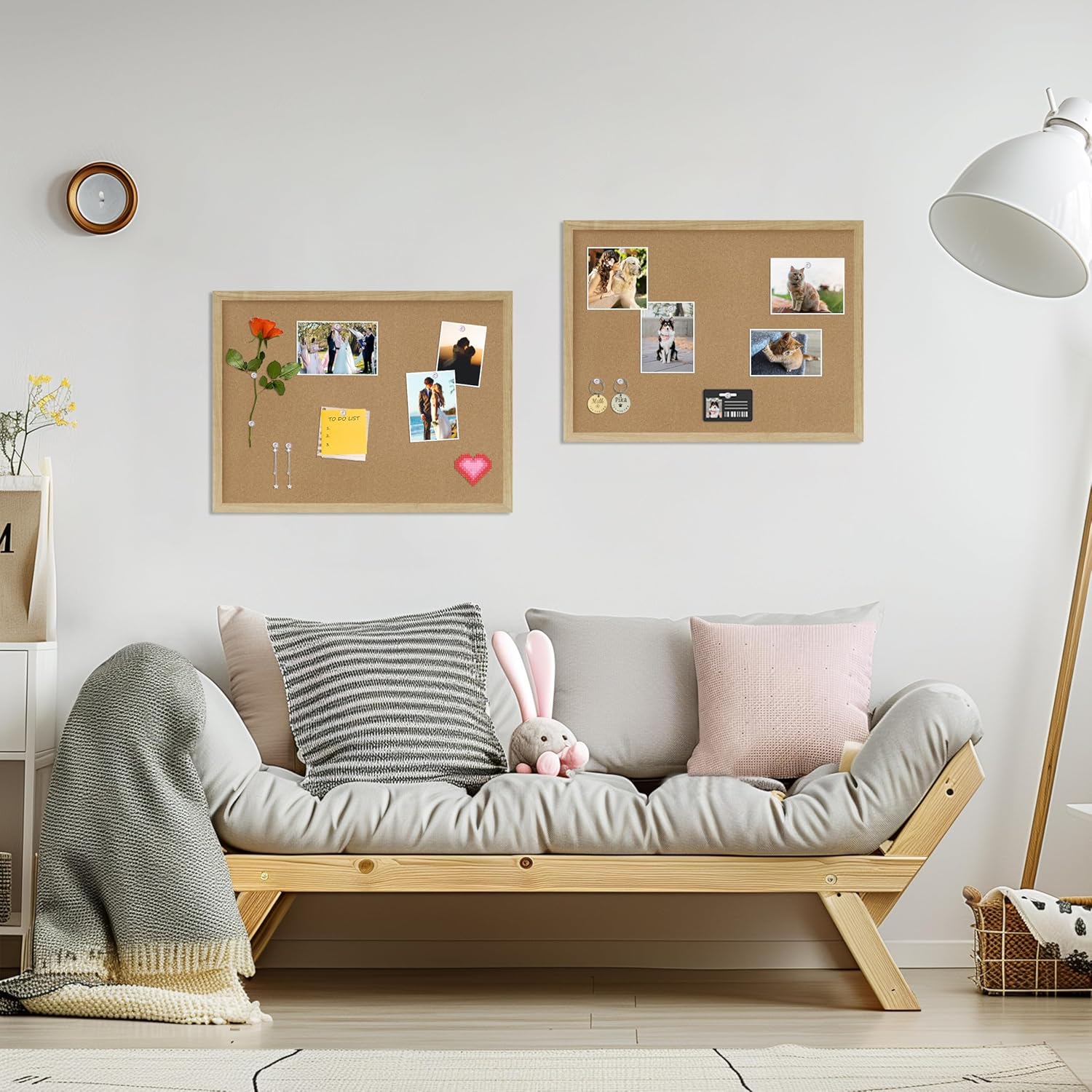 - 【Material】:The cork boards for walls is made of Oak wood which has well self-healing ability and repairability. The pin board features a four-ply splint design that is strong and thick enough not to be punctured by thumbtacks.