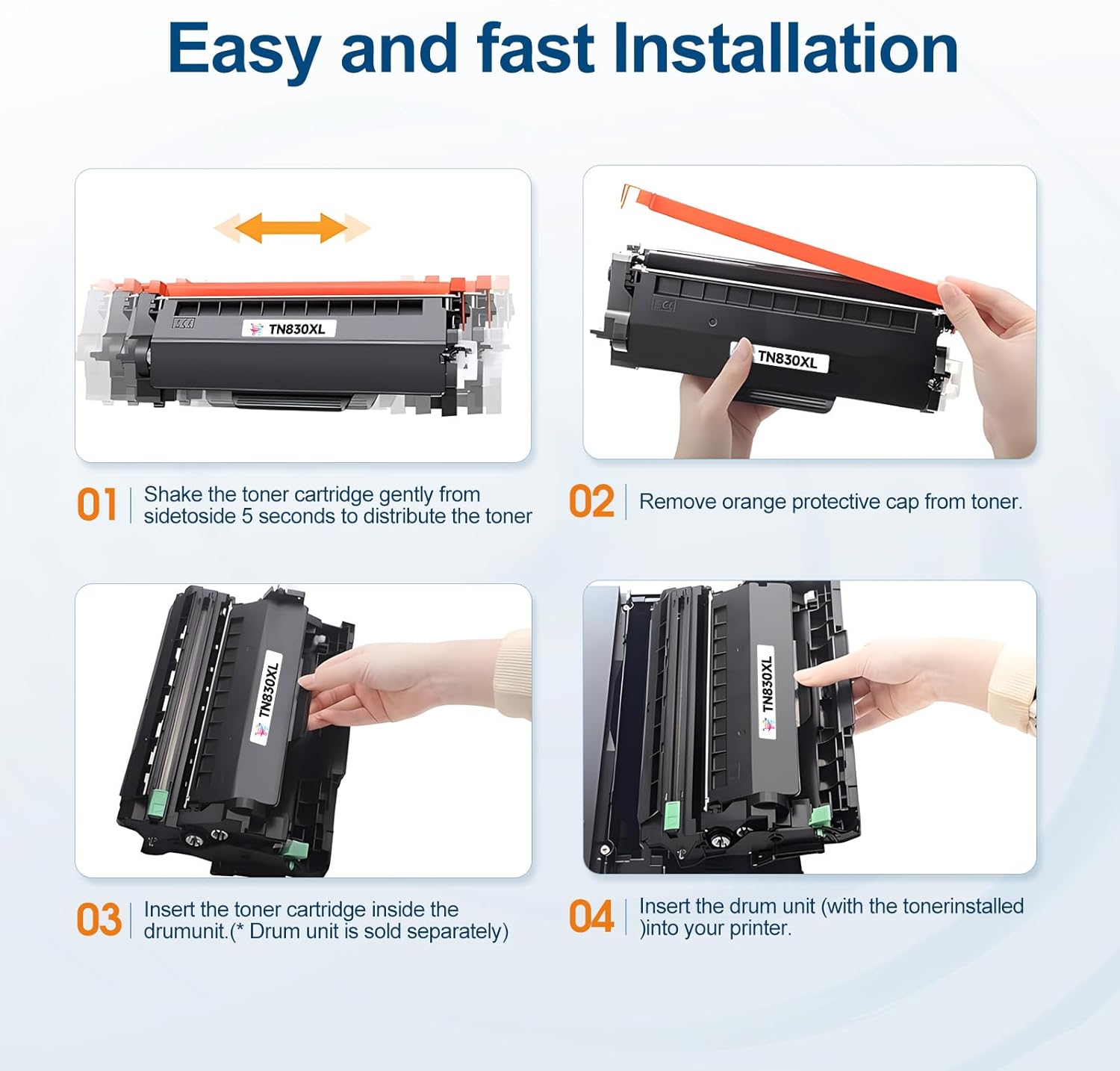 - ★ Our tn830 toner cartridge is easy to install and can be easily recognized by the printer