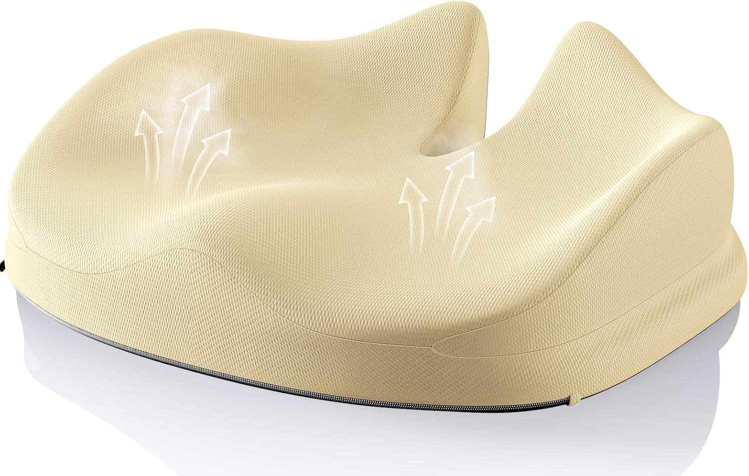 - 🧽【Ergonomic】The Ergonomic Seat Cushion is scientifically contoured to cradle your thighs & hip and help you sit upright up on any chair.