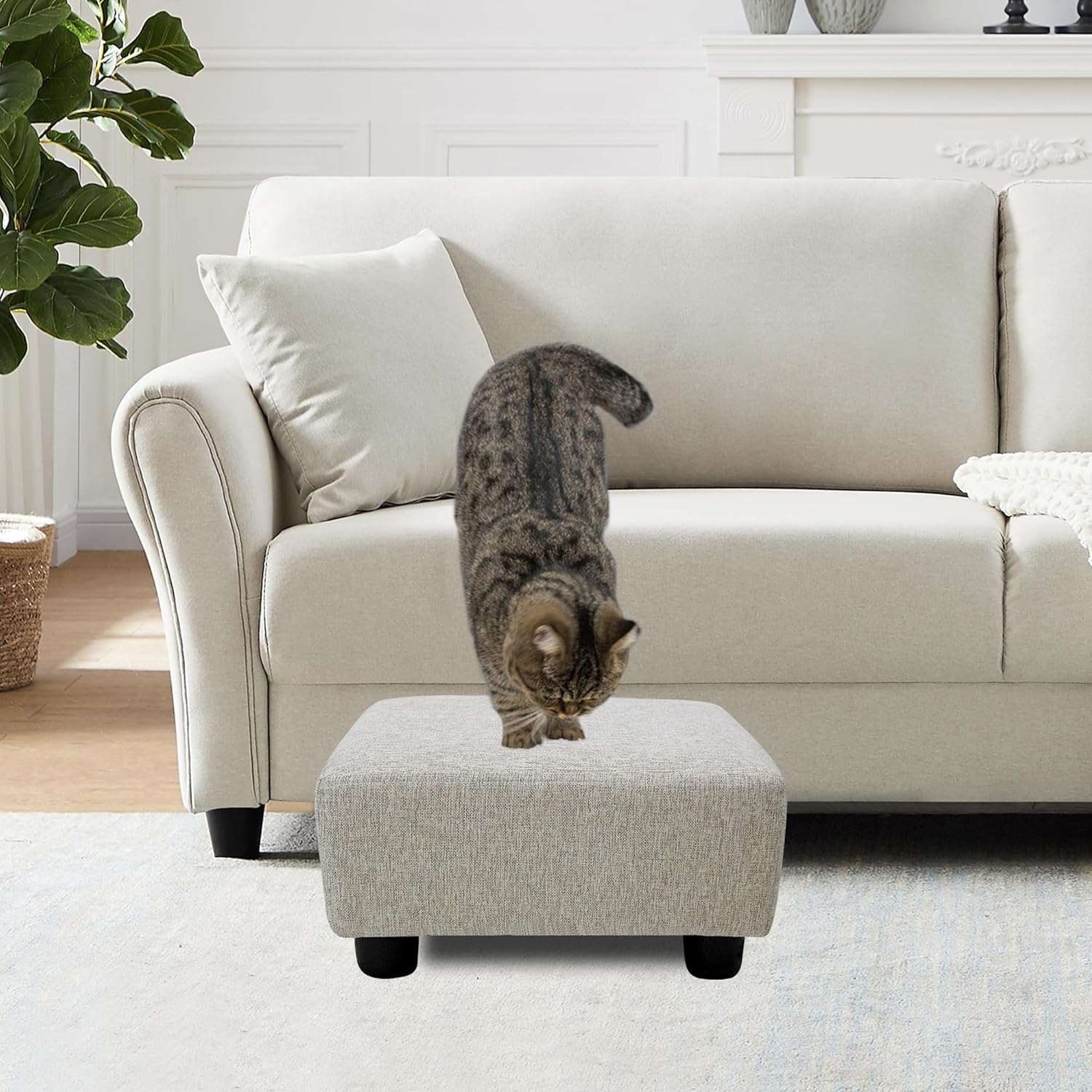 CAROLMADE Small Foot Stool Ottoman Footstool with Legs Under Desk Footrest for Living Room Bedroom and Office,Linen-Beige