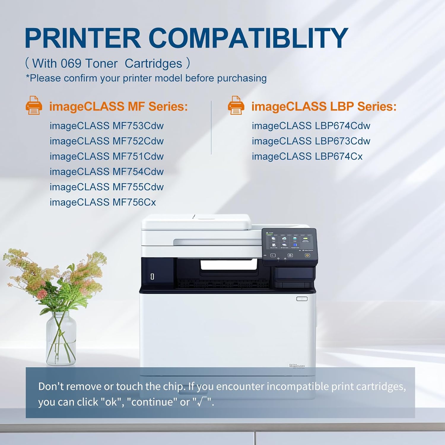 - Advantages: With a number of automatic and patented technology to create 069 toner cartridges. Superior quality on every page. With reliable, consistent performance, compatible for Canon Toner produces high-quality black-and-color laser prints that are clear, sharp, and won't fade or smudge