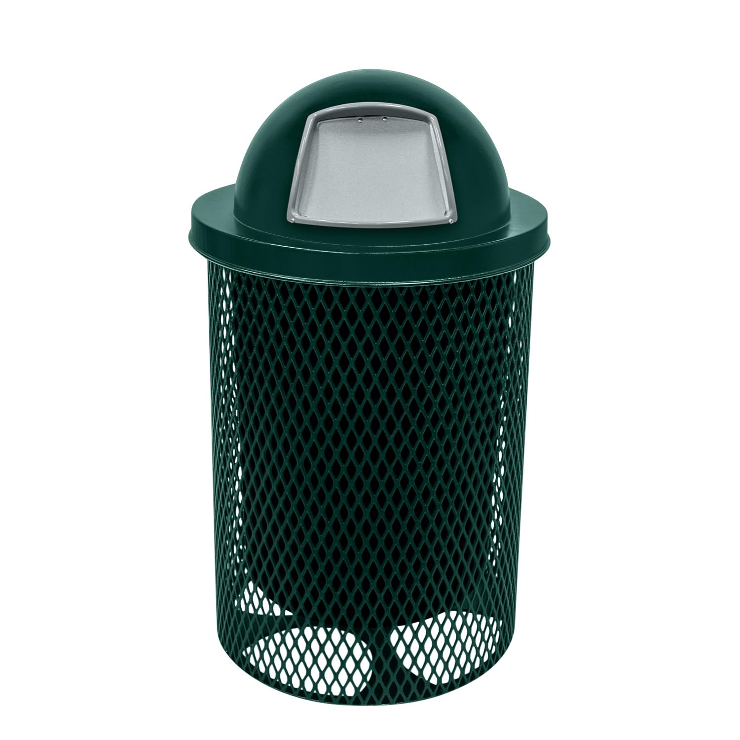 RDT-DGRN Heavy Duty 32 Gallon Round Trash Receptacle, Liner Included, Dark Green with Black Dome, Made in America