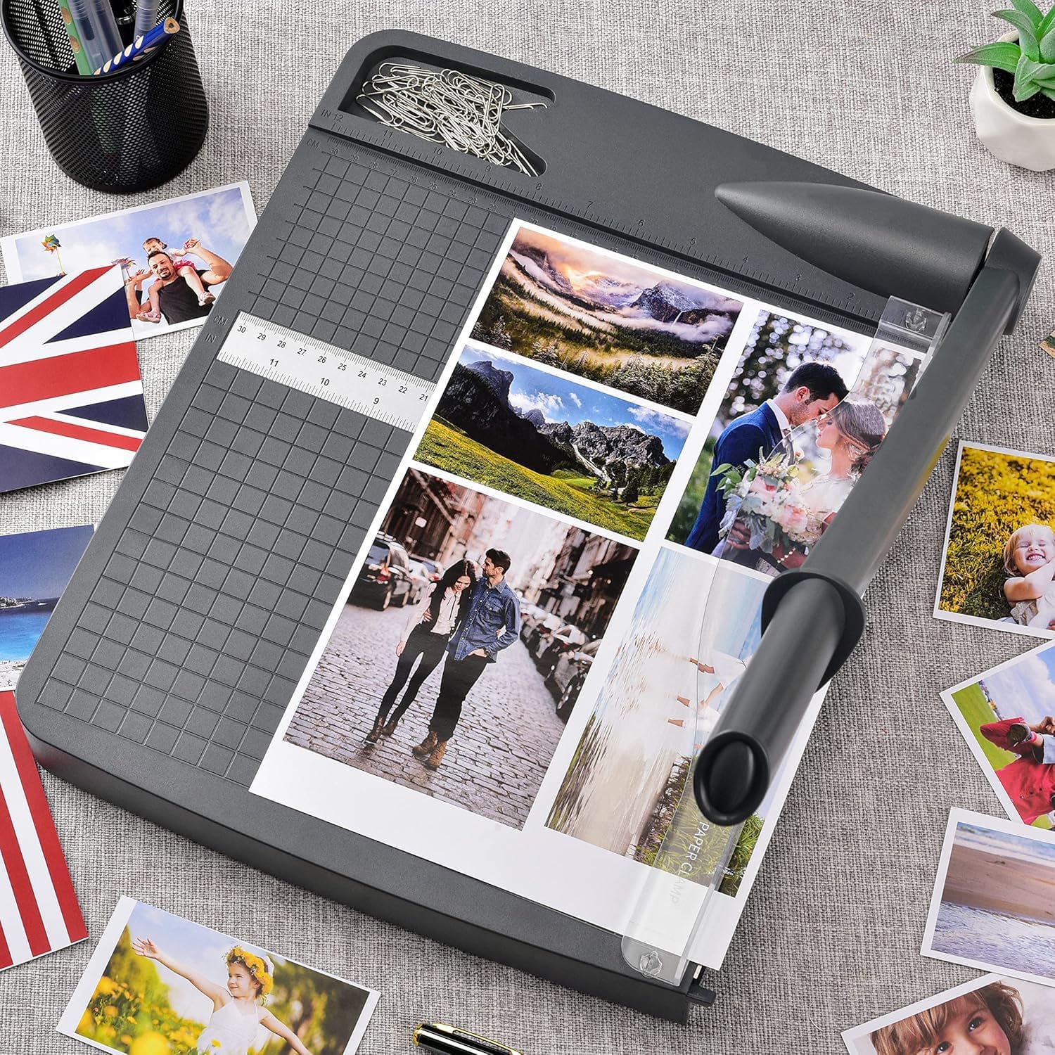 - Multifunctional Paper Trimmer: Designed with a safety guard, a safety latch, and anti-slip rubber pads, this professional paper cutter/trimmer can cut 12 sheets (20-16 lb) at a time safely for multiple purposes of use; a paperclip storage convenient for quick and hassle-free paper waste disposal or paperclip, binder clips, and small accessories storage
