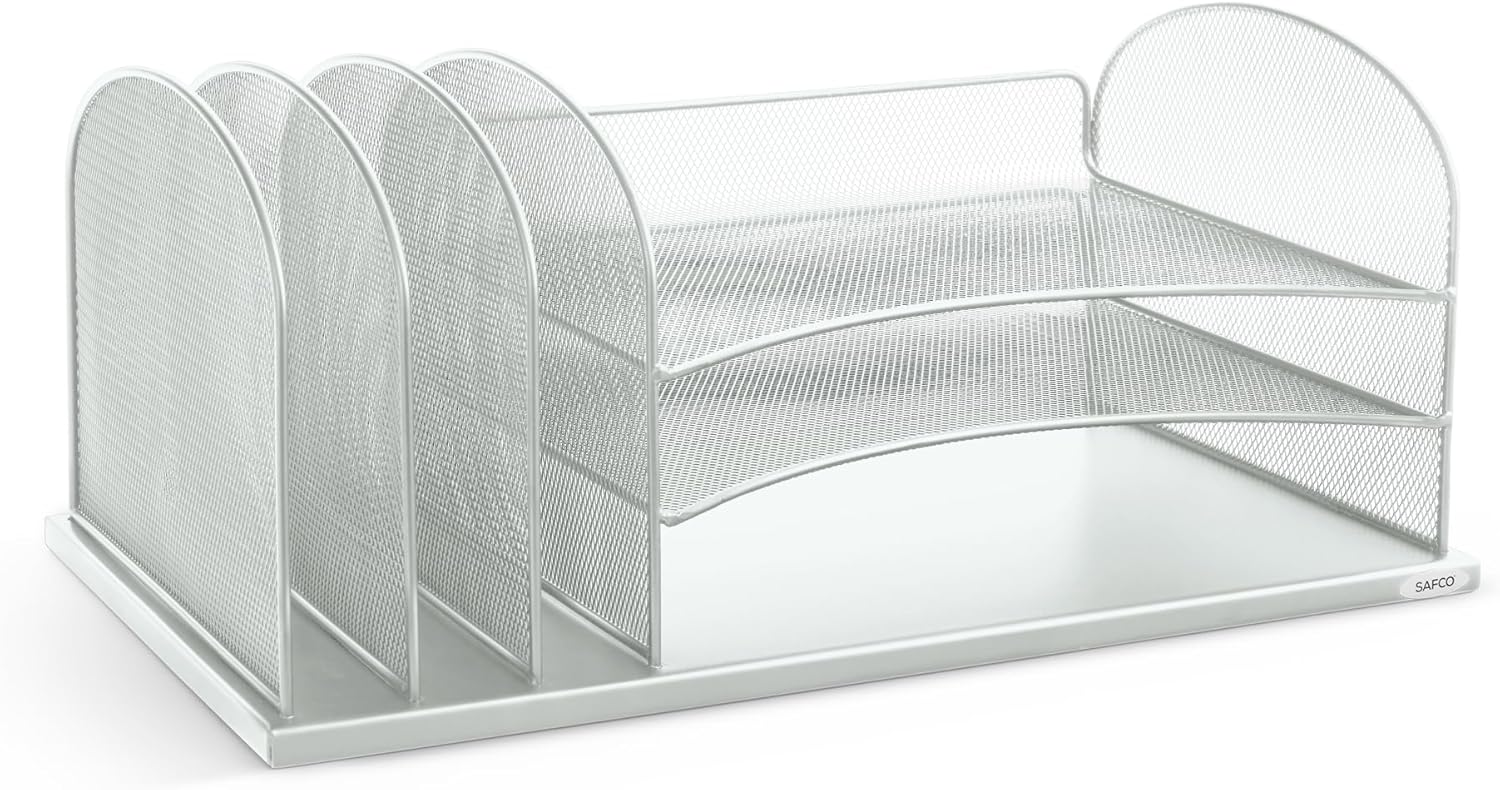 Safco Onyx Desk Organizer with 3 Horizontal and 3 Upright Trays, Durable Steel Construction, Silver