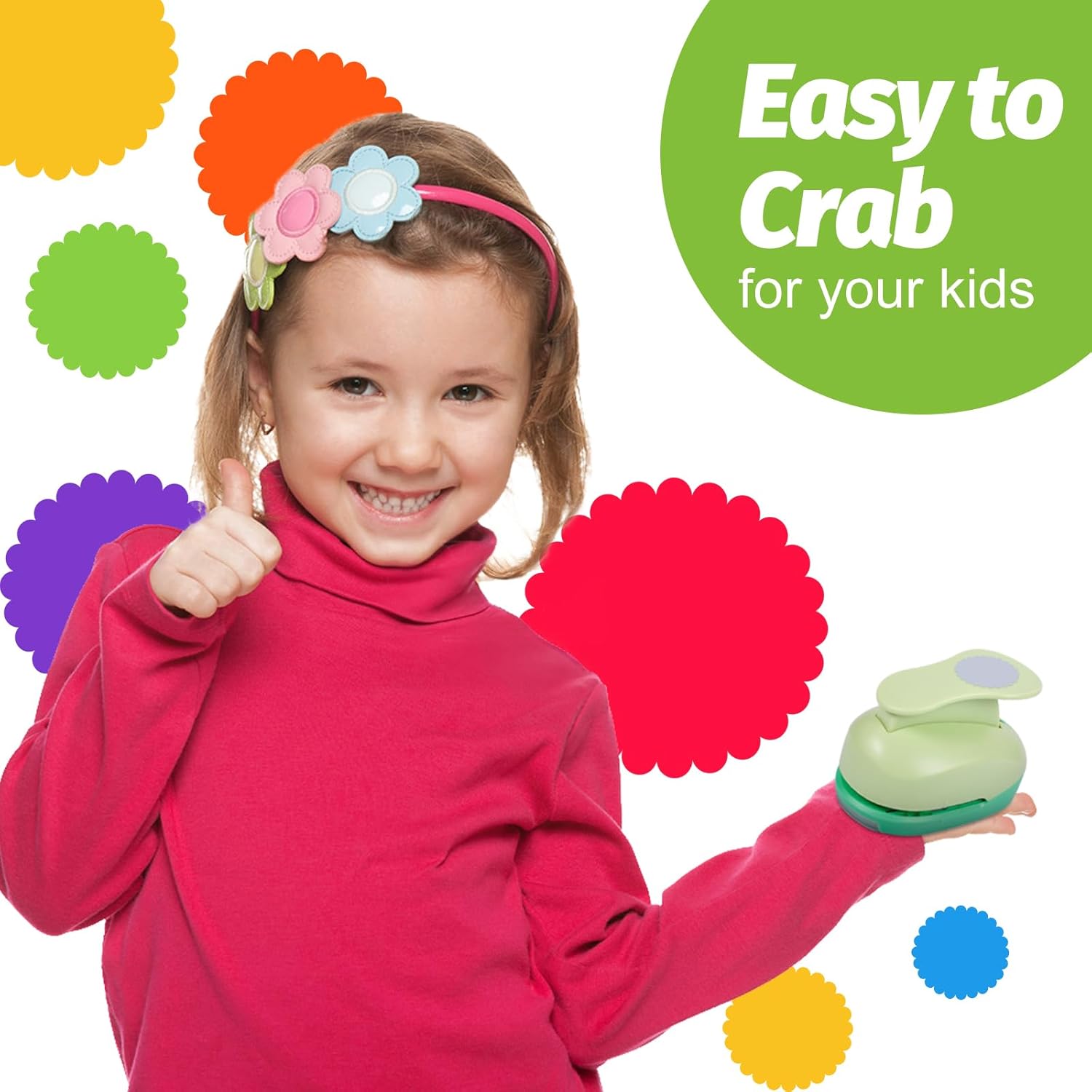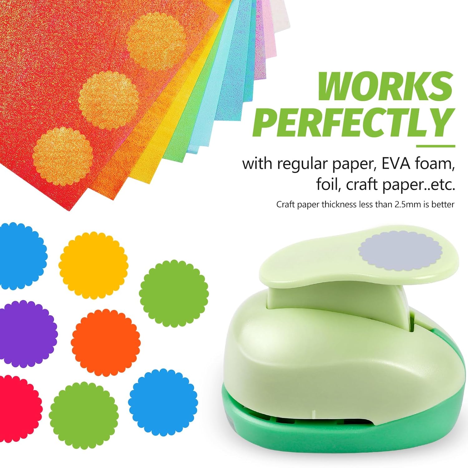 - PERFECT Scallop Circle Punch : For punched out images to decorate cards, envelopes, kids artwork, scrapbook pages, photo frames decor, origami, wrap, decorations, embellishments and more. The scallop circle punch back to school supplies can excite children's curiosity and promote imagination, developing intelligence, exercising the ability of using hands and brain