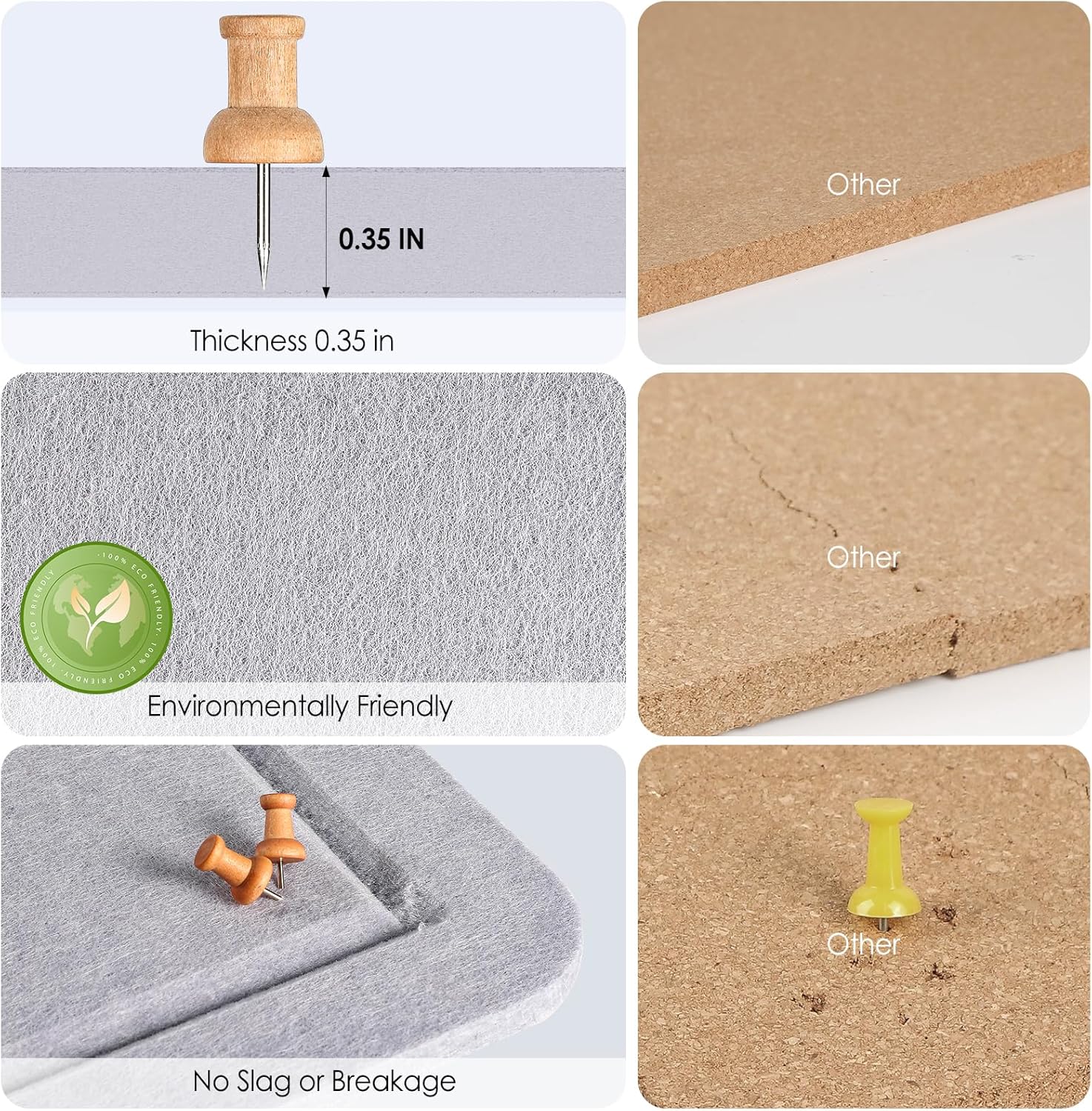 - FELT BULLETIN BOARD: The panel size is 35" x 17.5", 0.35" thick high-density felt panel, which can accommodate thumbtacks of multi sizes, and is more durable than corkboard and will not break or fall apart. (The thumbtacks are inserted at a 45-degree downward angle to increase load-bearing and stability.)