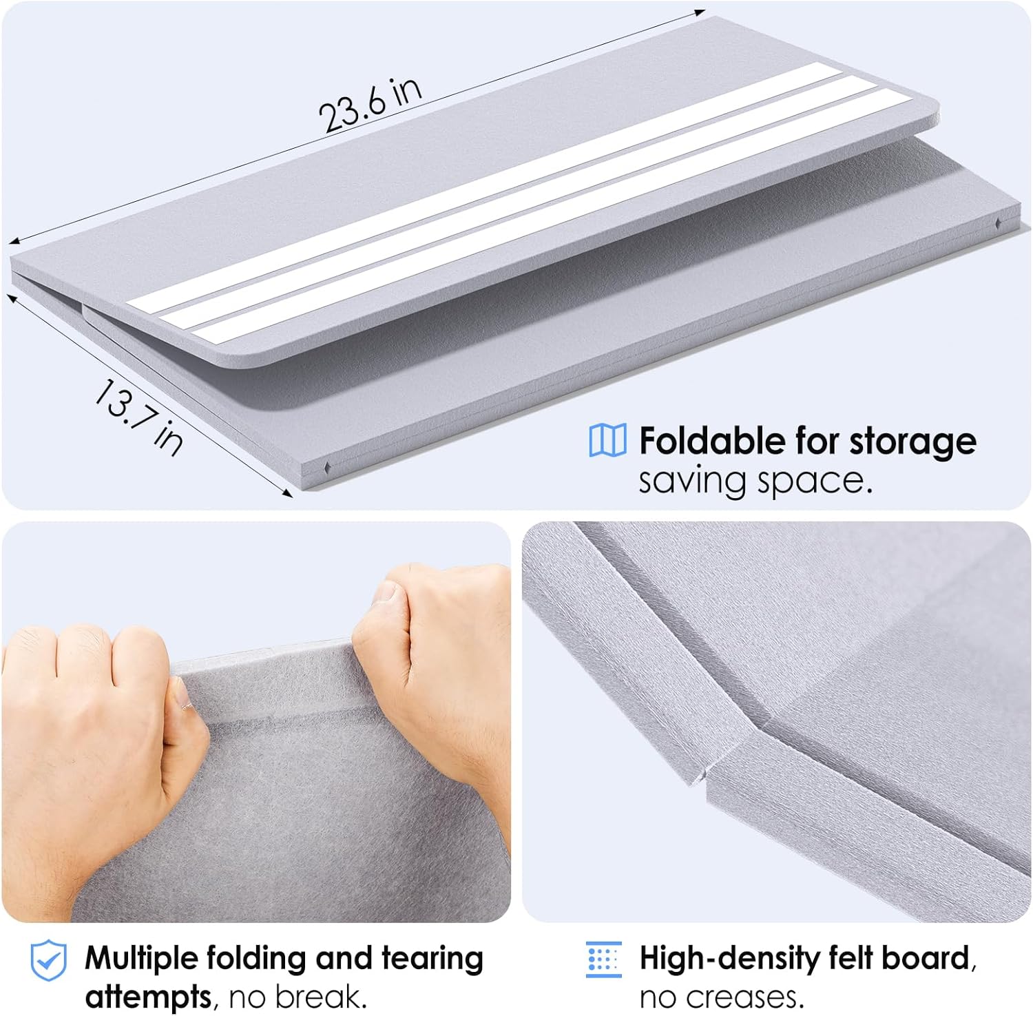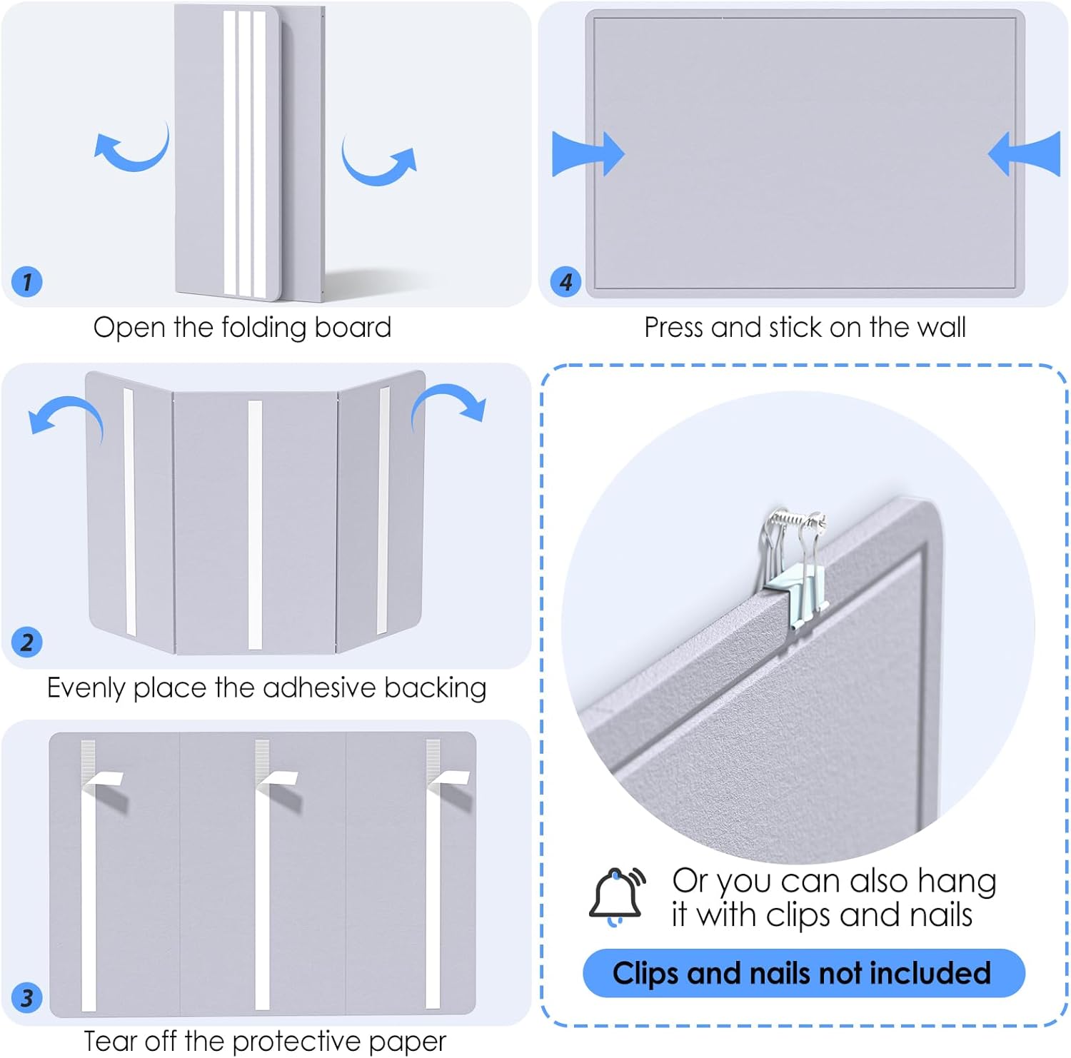 - FOLDING DESIGN: It adopts a 3-fold setting, which is portable and convenient to store without taking up space. The HOOK and LOOP FASTENER BACKING ADHESIVE adhesive design can be removed and displayed on the wall when needed. You can rest assured that the high-density board will not break after multiple tearing tests and no creases after unfolding.