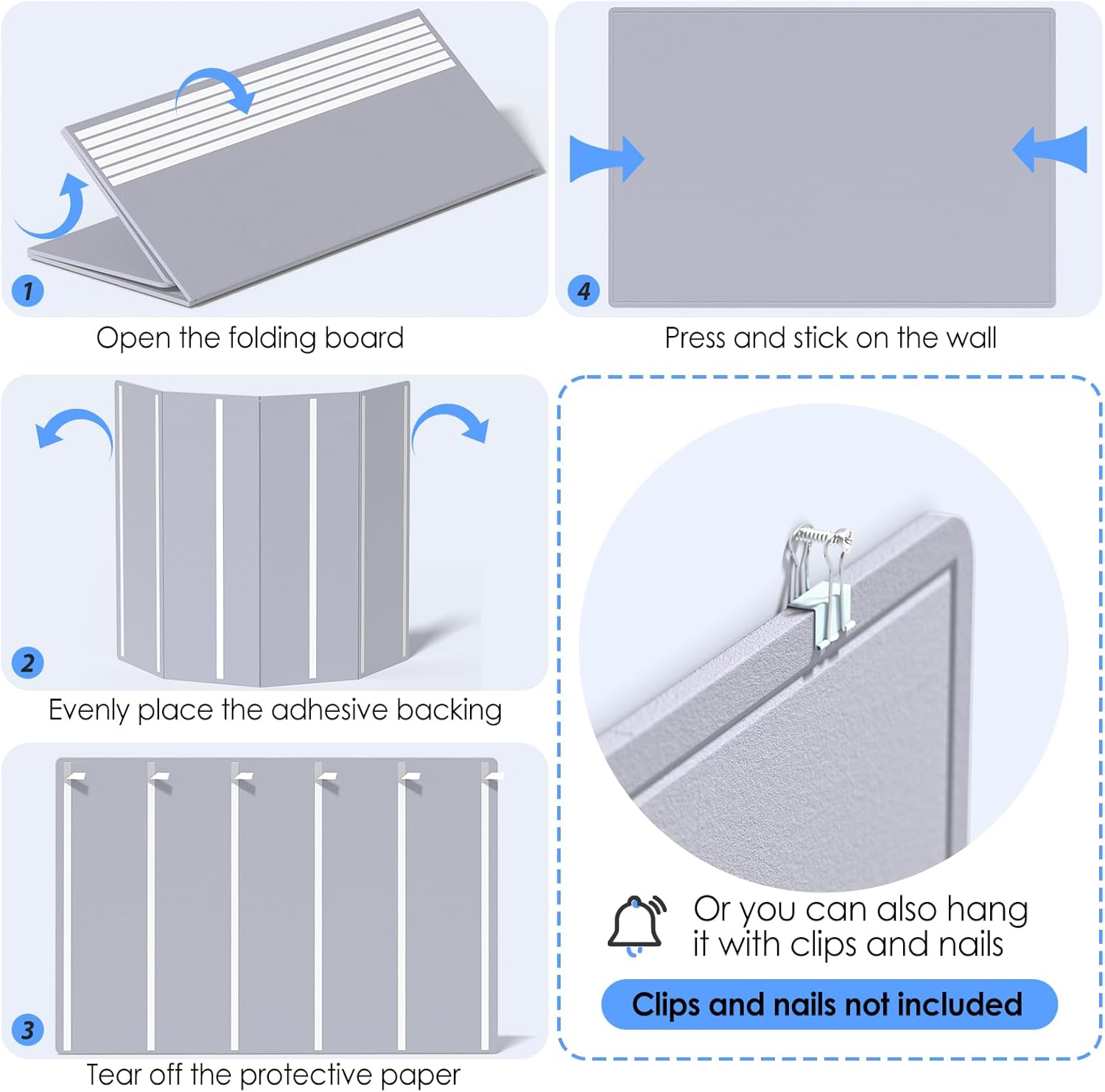 - FOLDING DESIGN: It adopts a 3-fold setting, which is portable and convenient to store without taking up space. The HOOK and LOOP FASTENER BACKING ADHESIVE adhesive design can be removed and displayed on the wall when needed. You can rest assured that the high-density board will not break after multiple tearing tests and no creases after unfolding.