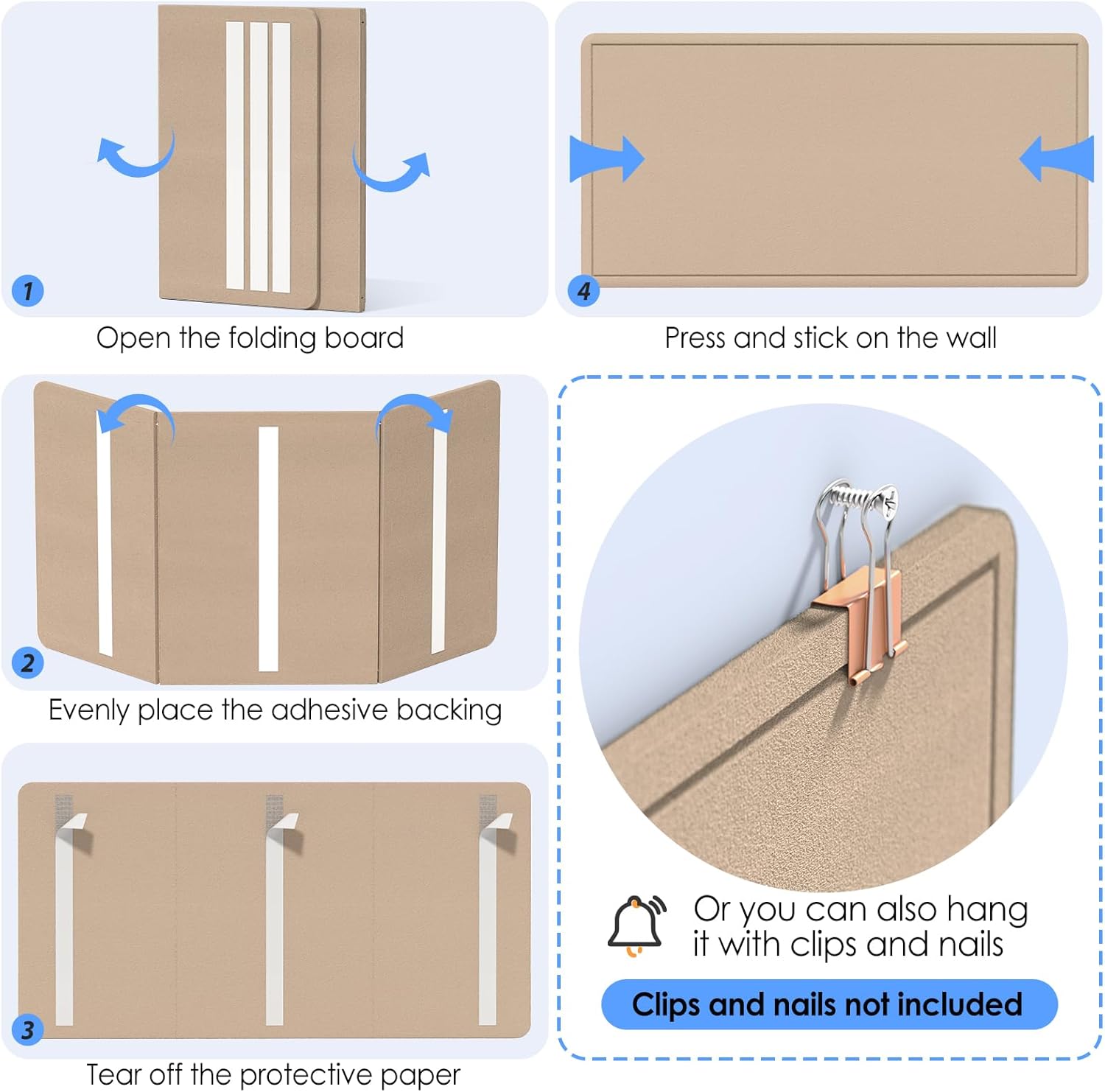 - FOLDING DESIGN: It adopts a 3-fold setting, which is portable and convenient to store without taking up space. The HOOK and LOOP FASTENER BACKING ADHESIVE adhesive design can be removed and displayed on the wall when needed. You can rest assured that the high-density board will not break after multiple tearing tests and no creases after unfolding.
