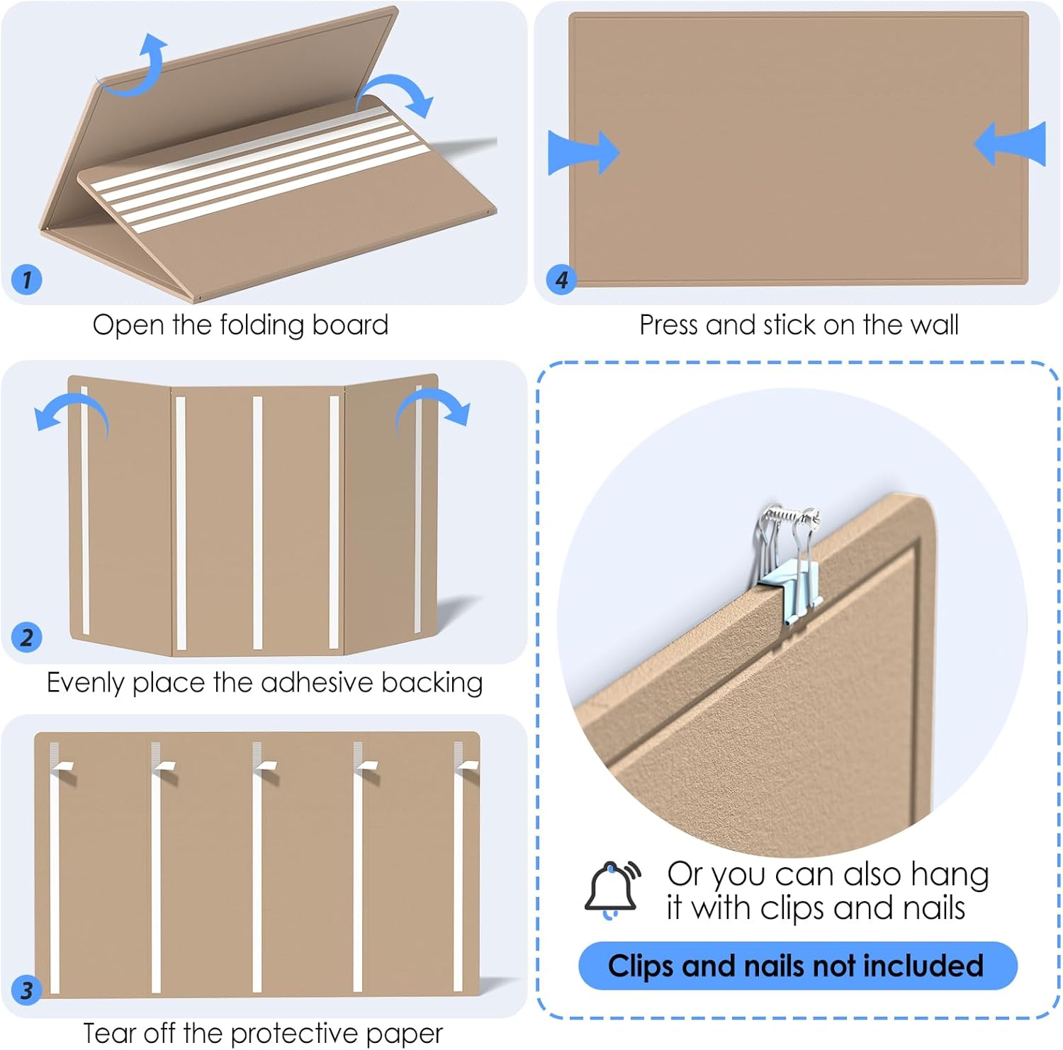 - FOLDING DESIGN: It adopts a 3-fold setting, which is portable and convenient to store without taking up space. The HOOK and LOOP FASTENER BACKING ADHESIVE adhesive design can be removed and displayed on the wall when needed. You can rest assured that the high-density board will not break after multiple tearing tests and no creases after unfolding.
