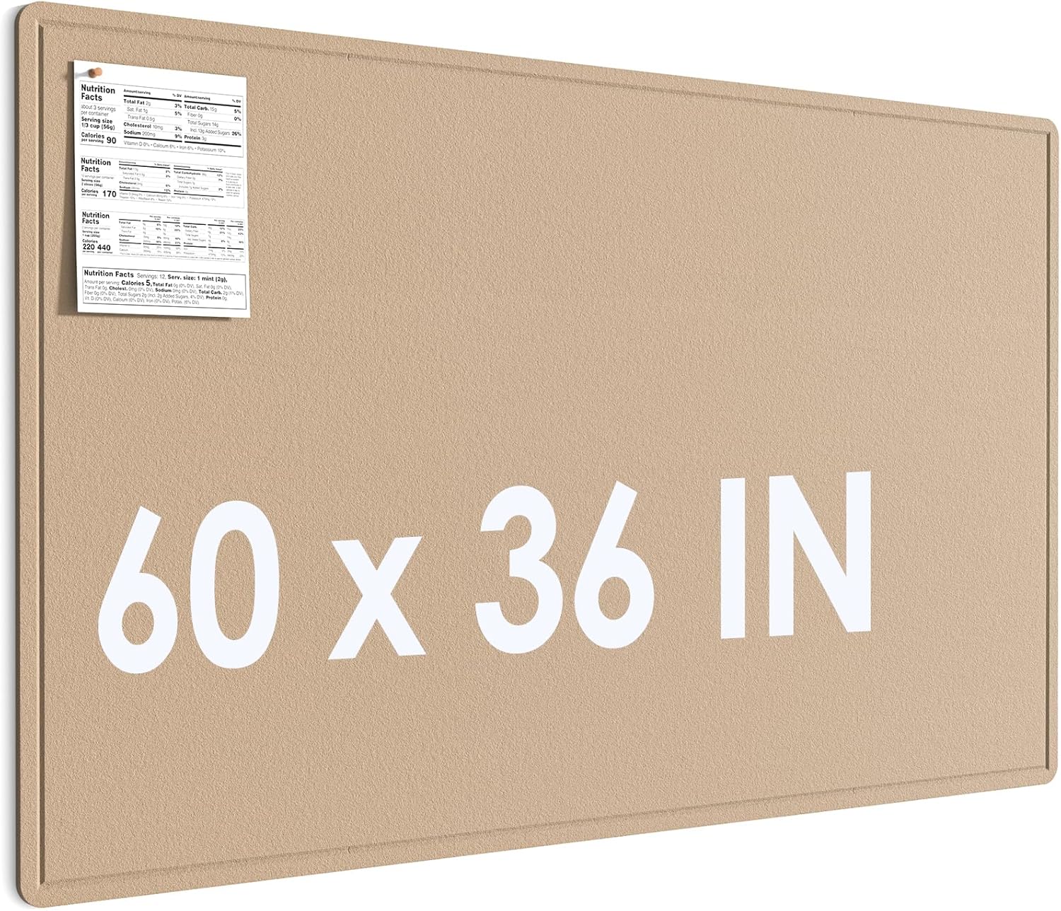 MaxGear Extra Large Bulletin Board 60" x 36", Foldable Felt Board Vision Board Supplies, Cork Board for Office, Home, School, Small Pin Boards for Walls Decorative Display Board Beige Brown