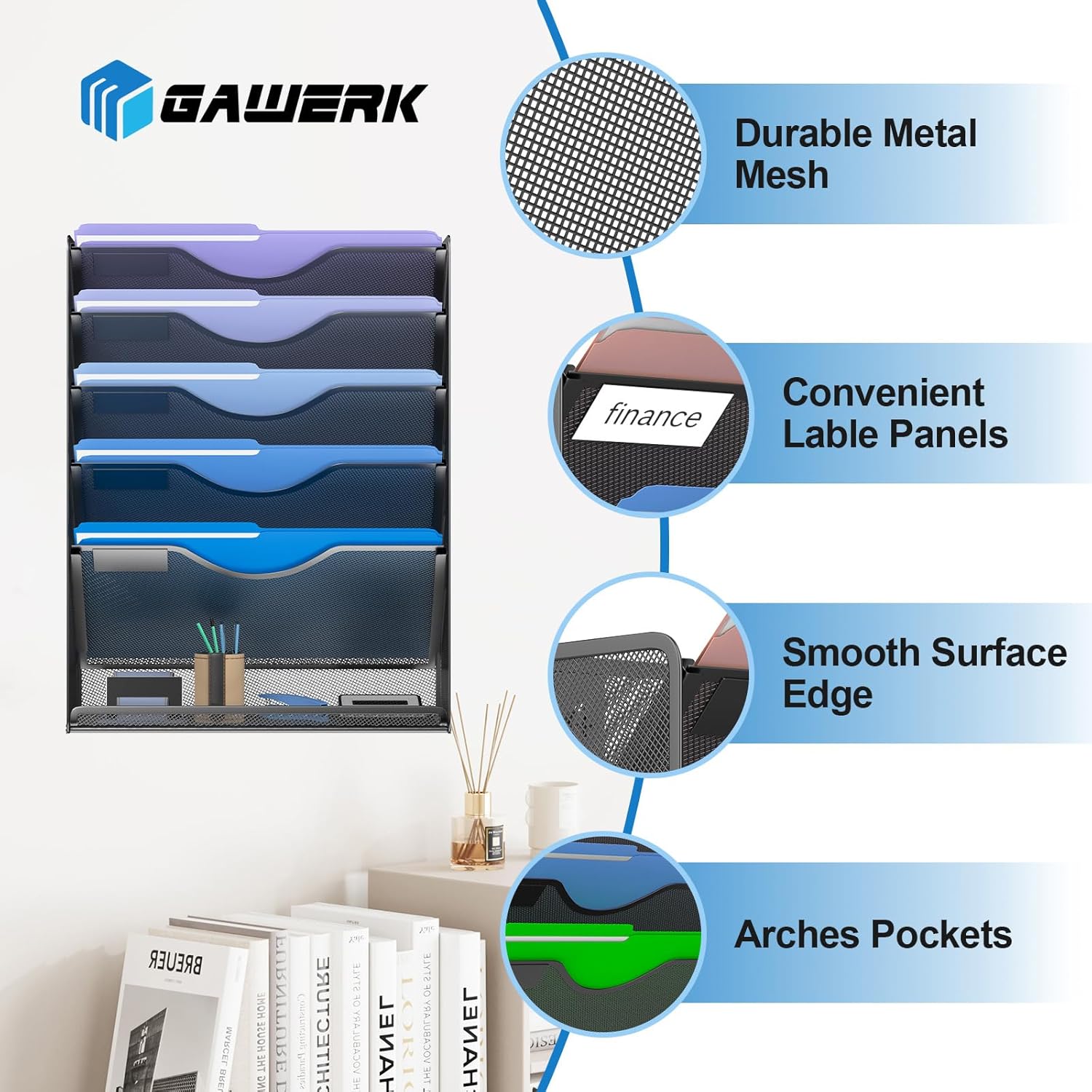 - ✏️ Multiple Compartments: 6-tier wall-mounted file organizer for storing files, with small label panels to mark the contents of each layer and 1 flat tray for small tools or supplies.