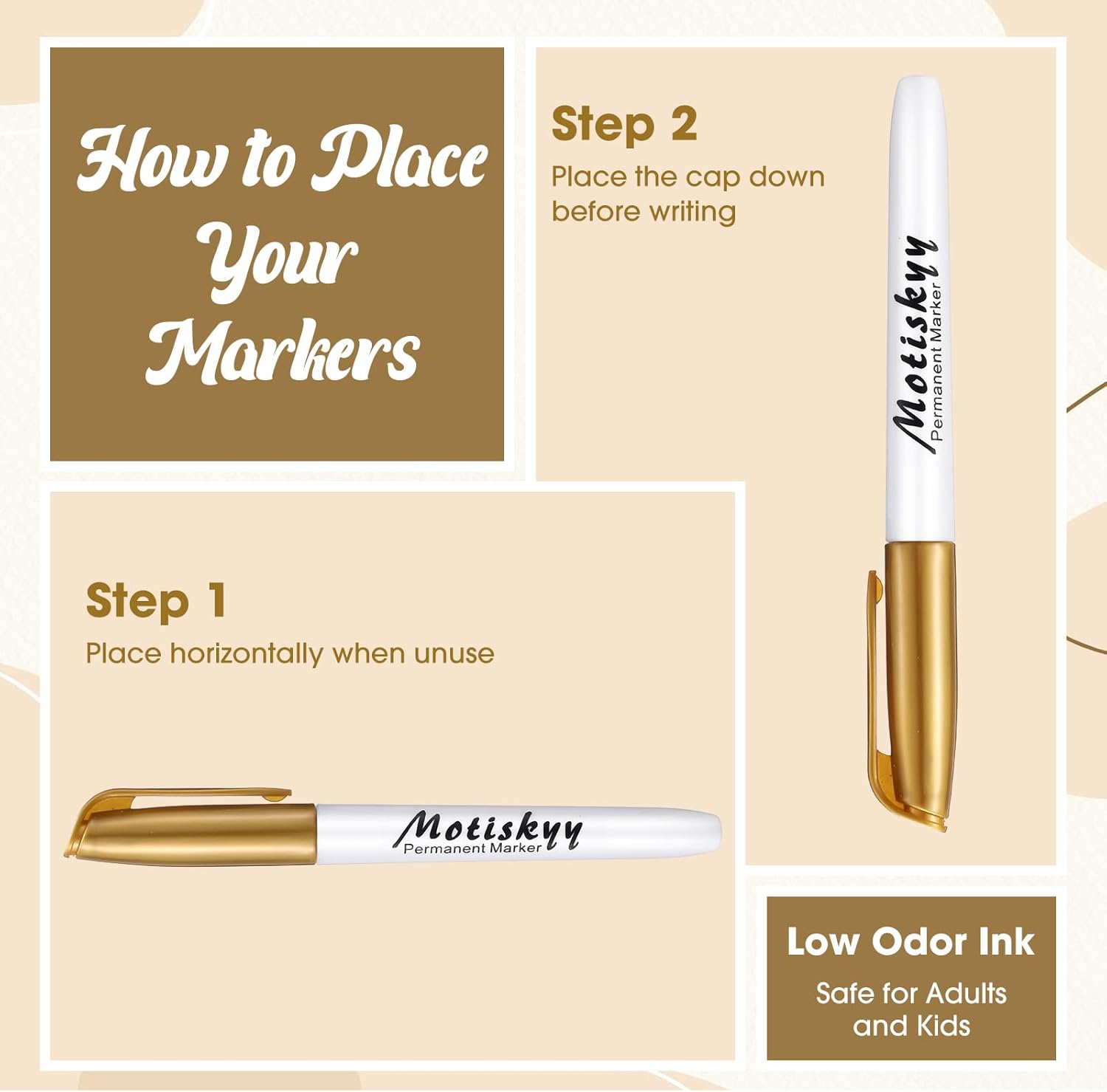 - Metallic Permanent Markers Bulk: the package includes 48 gold markers; No shaking or pumping needed to get the market started, simply uncap and write; Please cover the cap when not use, can prevent the ink from drying