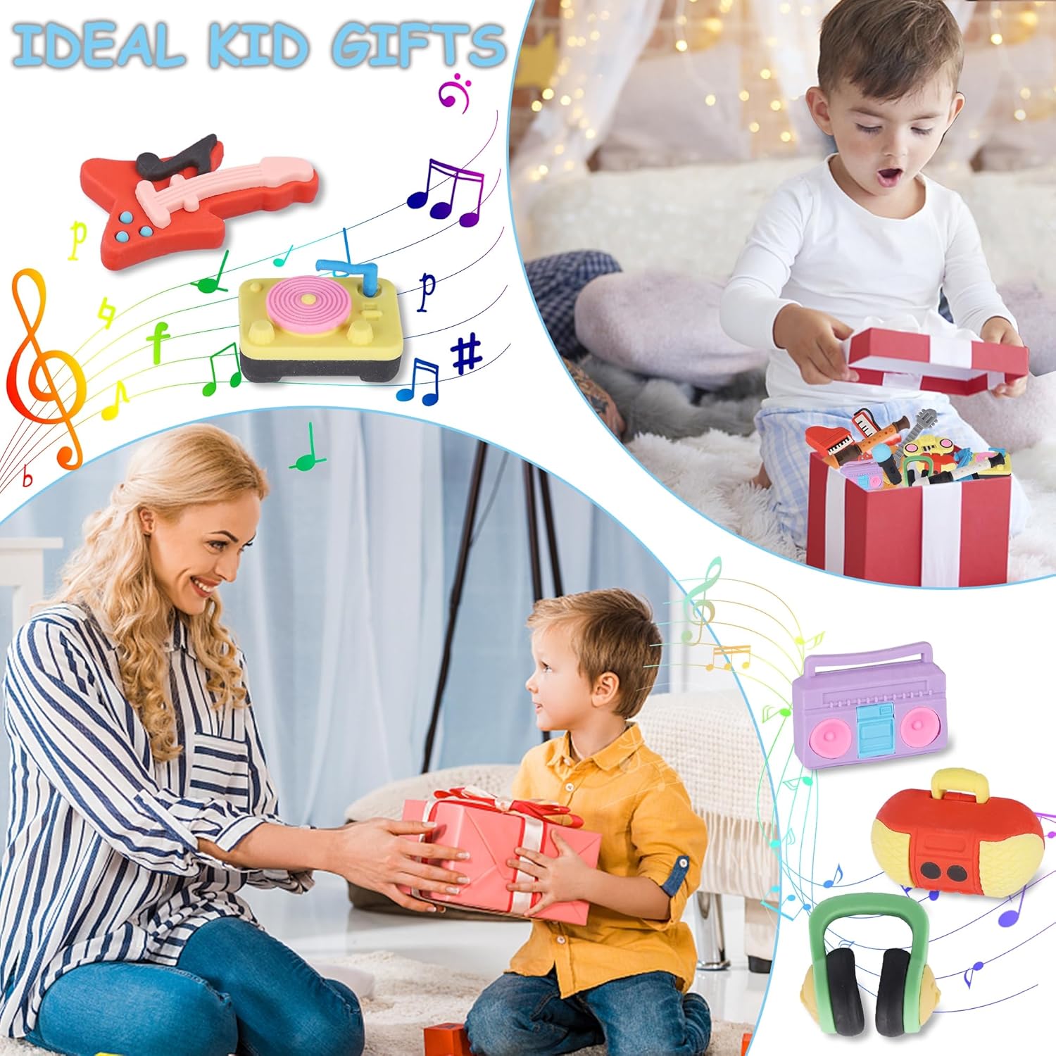 24 Pcs Erasers for Kids, Mini Pencil Eraser Bulk Classroom Prizes, Fun Puzzle Erasers for Preschool Elementary Student, Back to School Supplies (Musical Instrument)