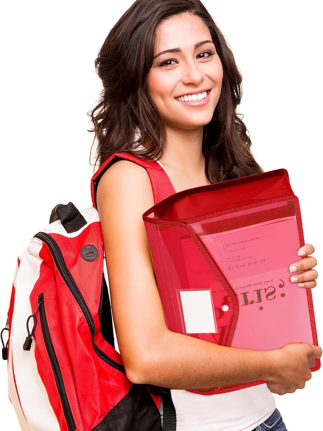 10 Pieces Plastic File Folders Envelope Expanding File Wallet Organizer Documents Folder with Snap Closure and Pocket, A4 Size Waterproof Transparent Pouch(Red,Horizontal)