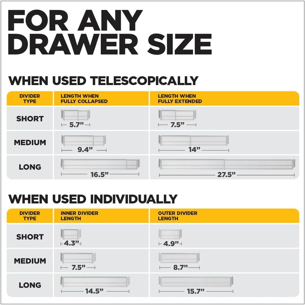 - CUSTOMIZABLE FIT : Flexivider's unique telescopic design allows for easy adjustment to fit any drawer size, offering a personalized organization solution.