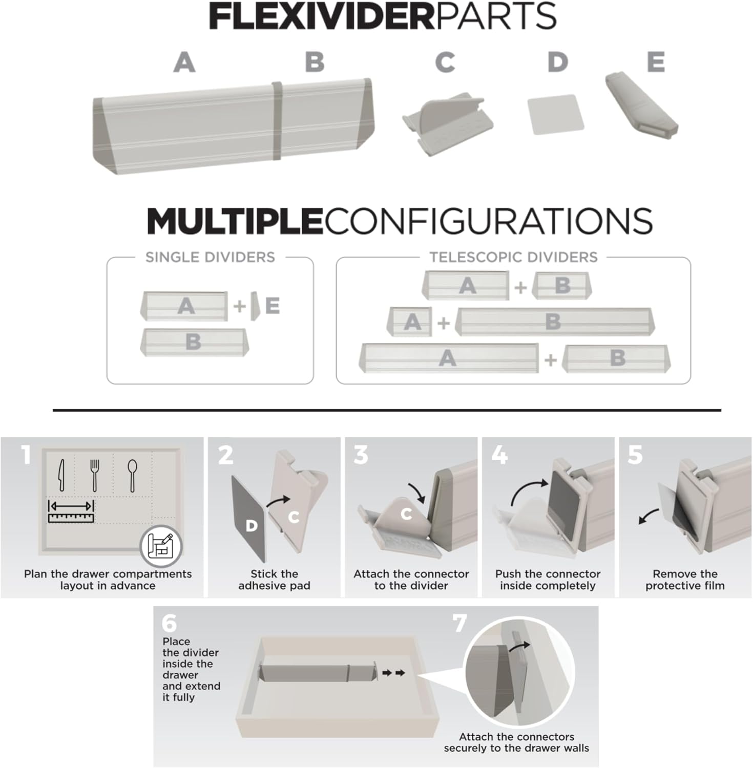 - EASY INSTALLATION: Set up your Flexivider quickly and without tools; the simple installation process makes organizing your drawers hassle-free.