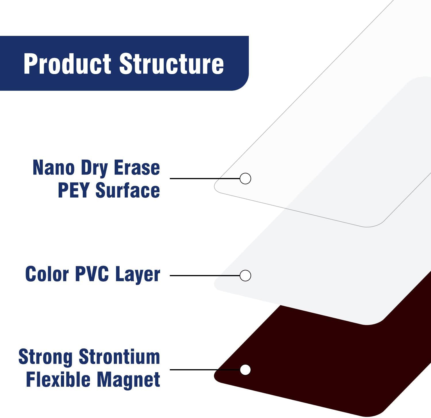 - Material: Magnetic dry erase labels are made of soft rubber, suitable for adhering to metal and magnetic surfaces.The magnetic strip labels are strong enough to stick to magnetic surface, easy to moved,stable and reliable without falling.