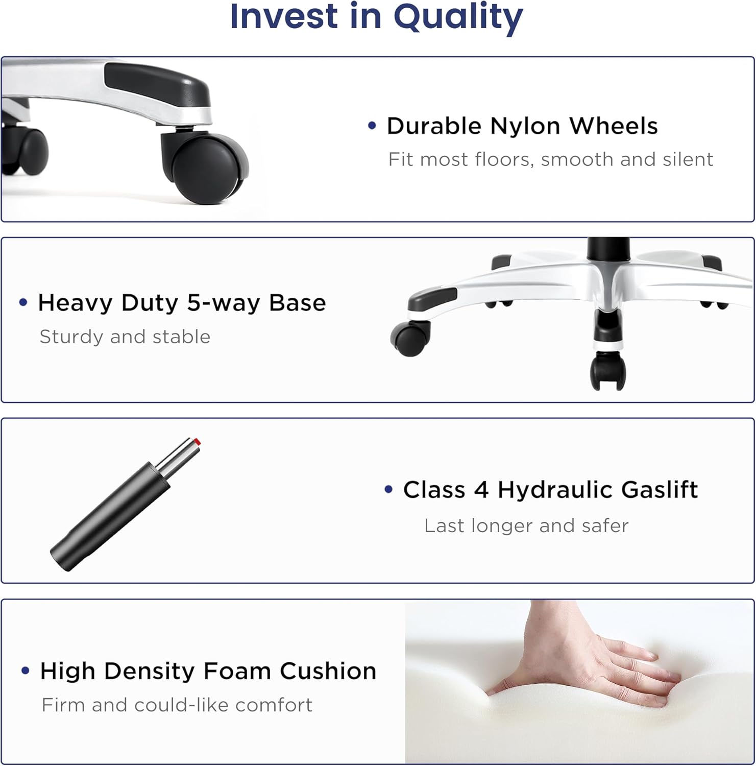Nouhaus Ergonomic Office Chair Premium Microfiber Leather Adjustable Lumbar Support & Armrests, High Back Comfy Desk Gaming Chairs Executive Computer Swivel Chair Tilt Function(Posture,White)