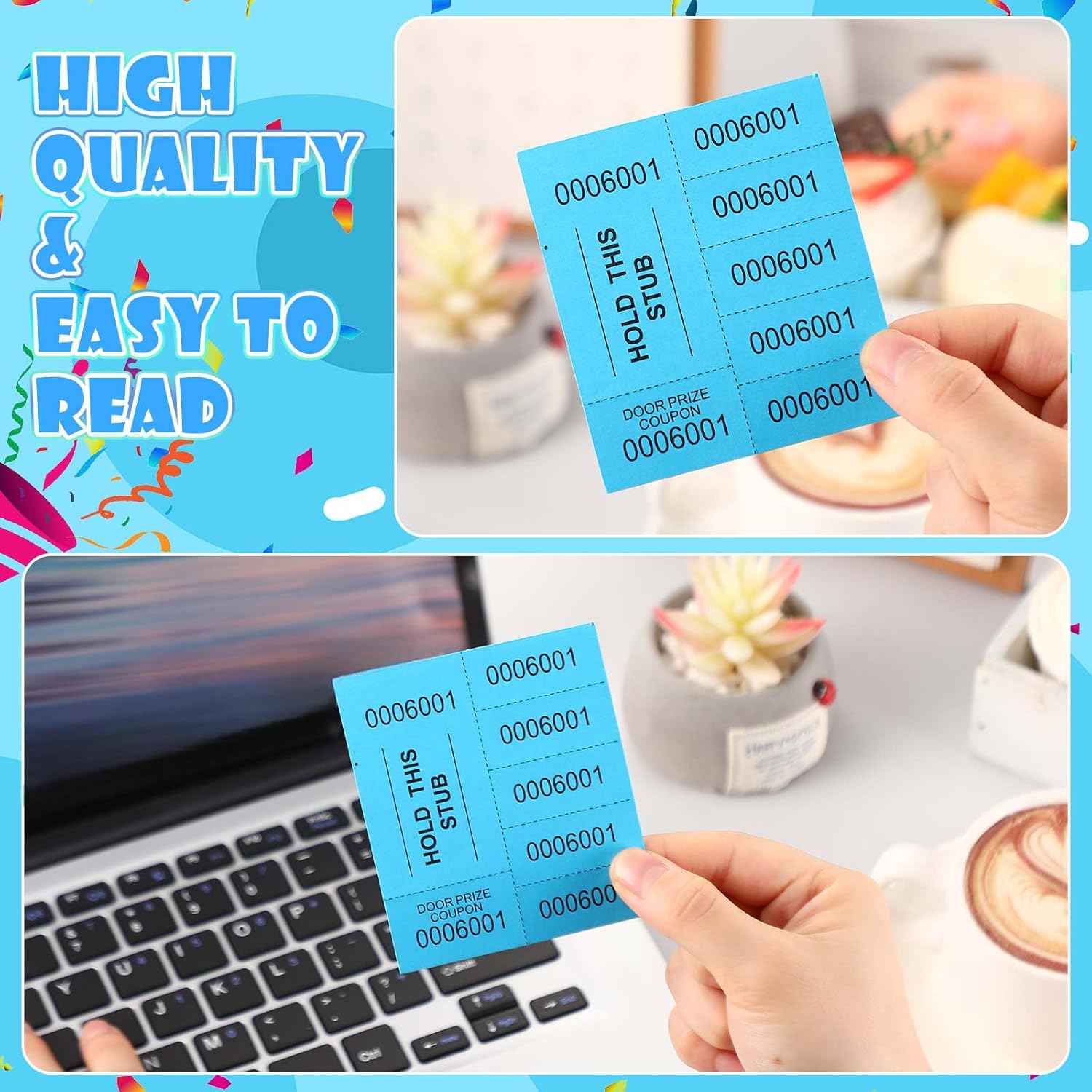 - Various Colors: these raffle tickets manufactured from paper with a smooth, flat surface and a medium thickness for stability; They're crafted with clean perforations for effortless tearing, It should be stated that each ticket book has numbers, and every book comprises 7 identical numbers, including 2 stubs and 5 bid numbers. Please keep in mind that it's not possible to select the beginning number for each batch