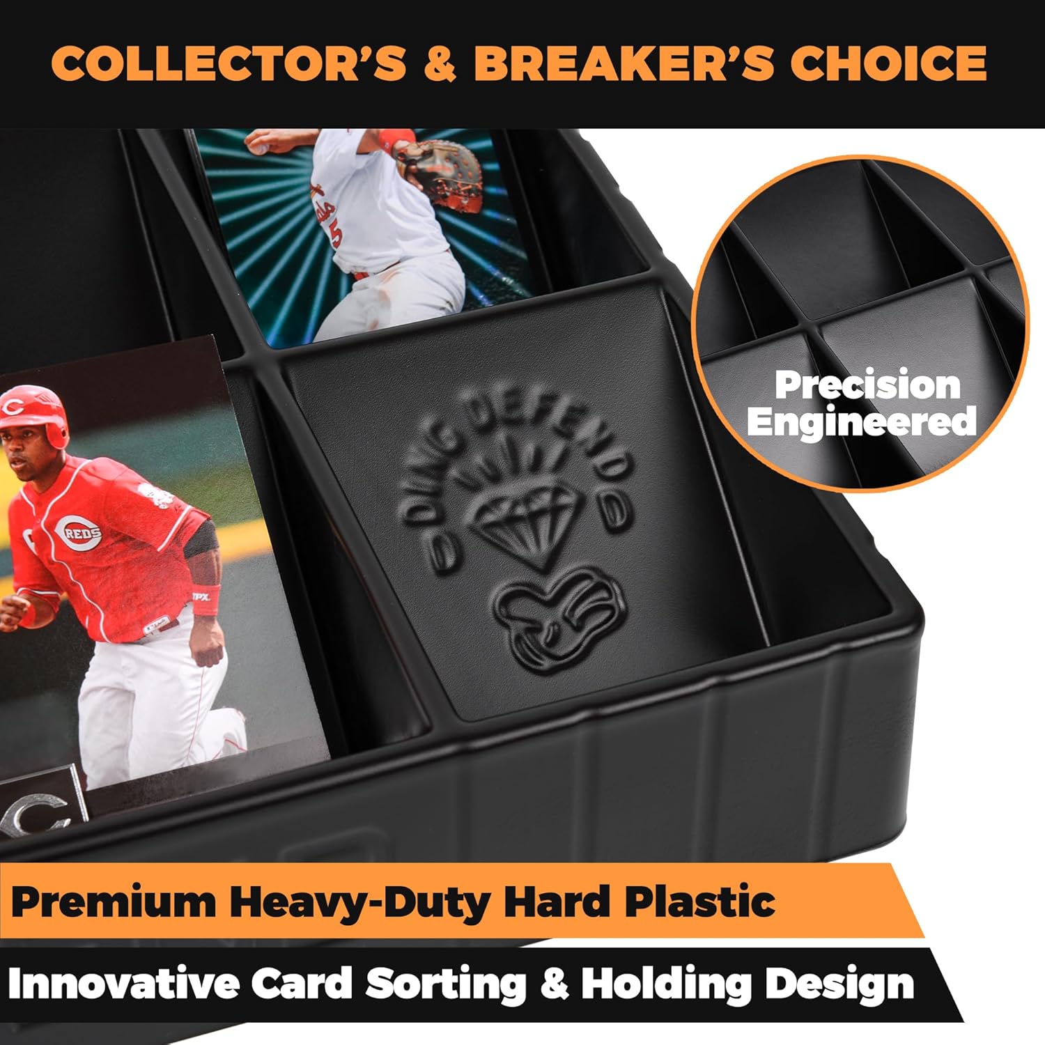 - 15 Card Compartments - Our Ding Defend trading cards & sports card organizer has 15 compartments. Each section can hold up to 100 cards, so you'll never run out of space for your growing collection.