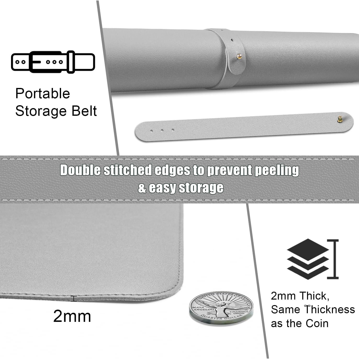- 🖱️ 🖱️Versatile Usage Large Mouse Pad: Leather computer pad in 5 sizes and 10 colors. A portable storage strap allows you to roll up the desk pad and take it with you. Accommodate a laptop, mouse, and keyboard, which can be used as a mouse pad, for writing, and painting. A great choice for office work, and home.
