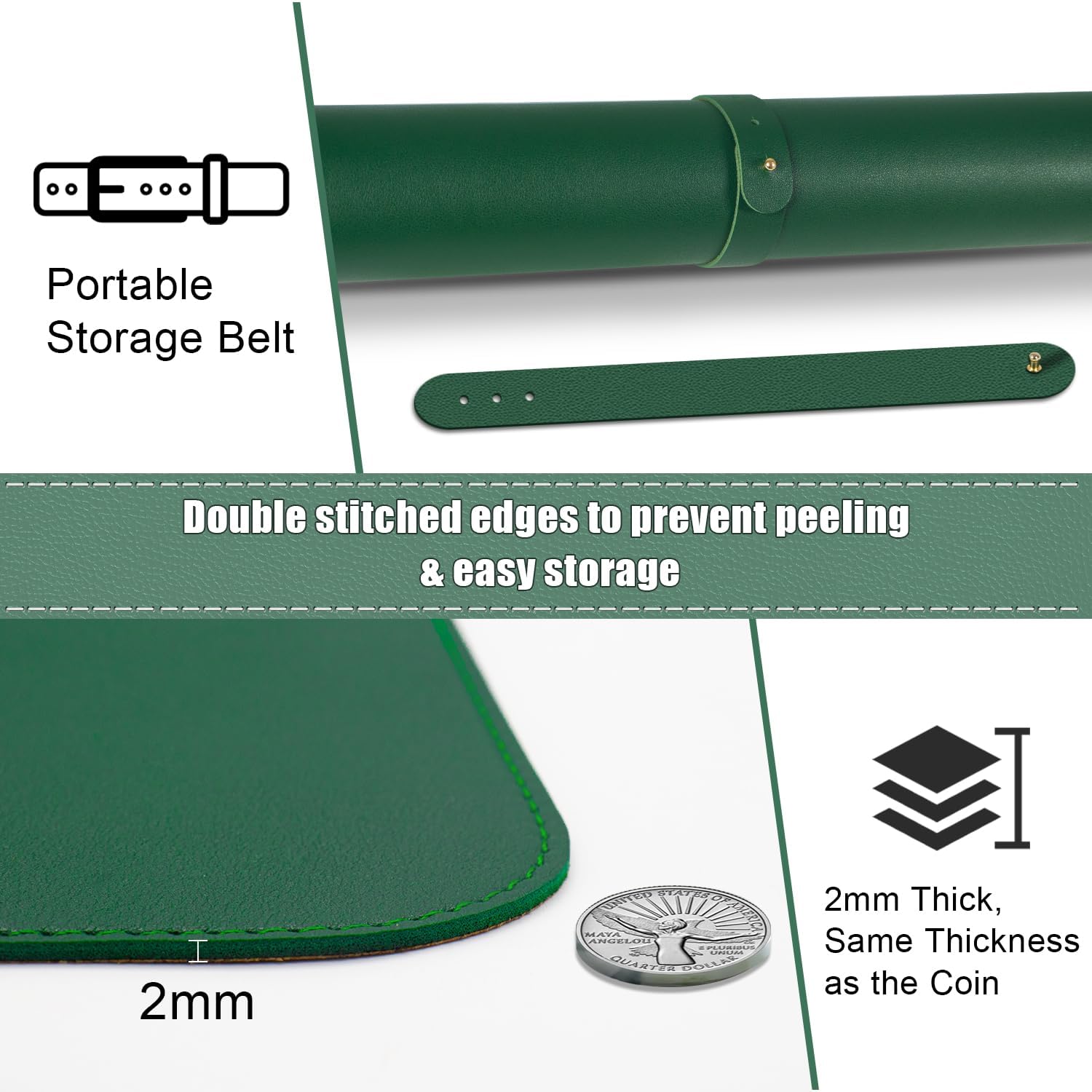 - 🖱️ 🖱️Versatile Usage Large Mouse Pad: Leather computer pad in 5 sizes and 10 colors. A portable storage strap allows you to roll up the desk pad and take it with you. Accommodate a laptop, mouse, and keyboard, which can be used as a mouse pad, for writing, and painting. A great choice for office work, and home.