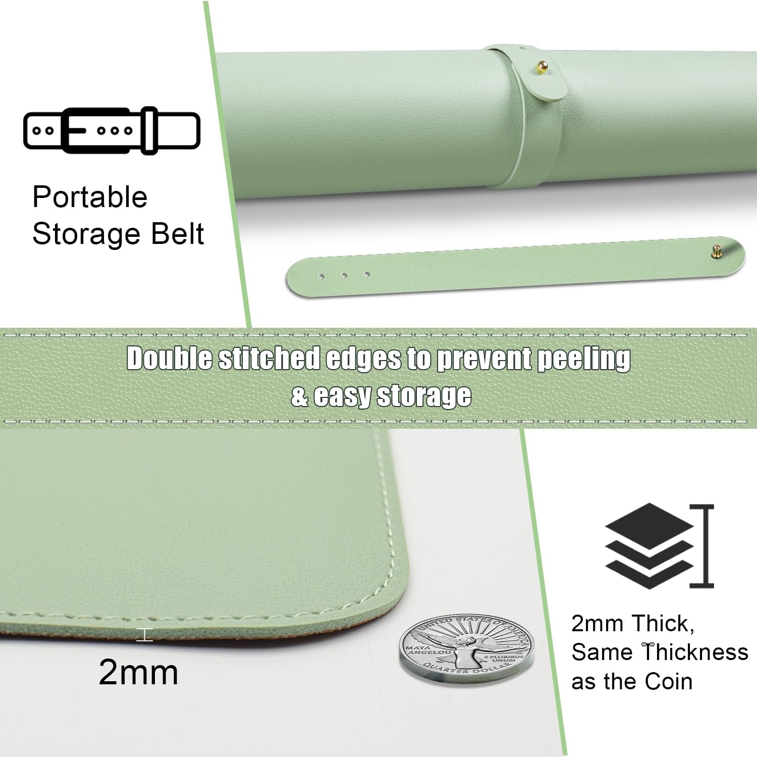 - Versatile Usage Large Mouse Pad: Leather computer pad in 5 sizes and 10 colors. A portable storage strap allows you to roll up the desk pad and take it with you. Accommodate a laptop, mouse, and keyboard, which can be used as a mouse pad, for writing, and painting. A great choice for office work, and home.