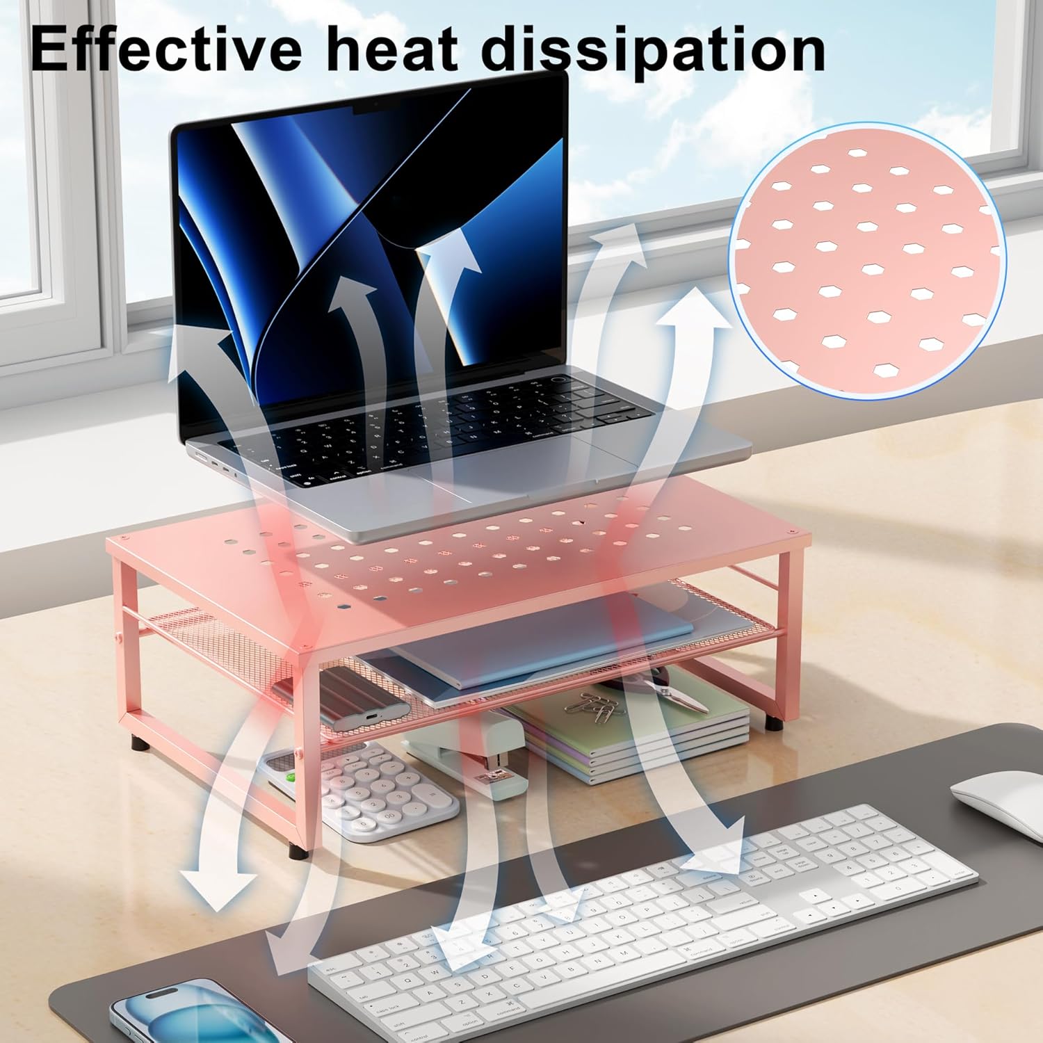 gianotter 2-Tier Metal Monitor Stand Riser, Desk Organizer for Monitor, Office Desk Storage Organizer for Office Supplies (Rose Gold)