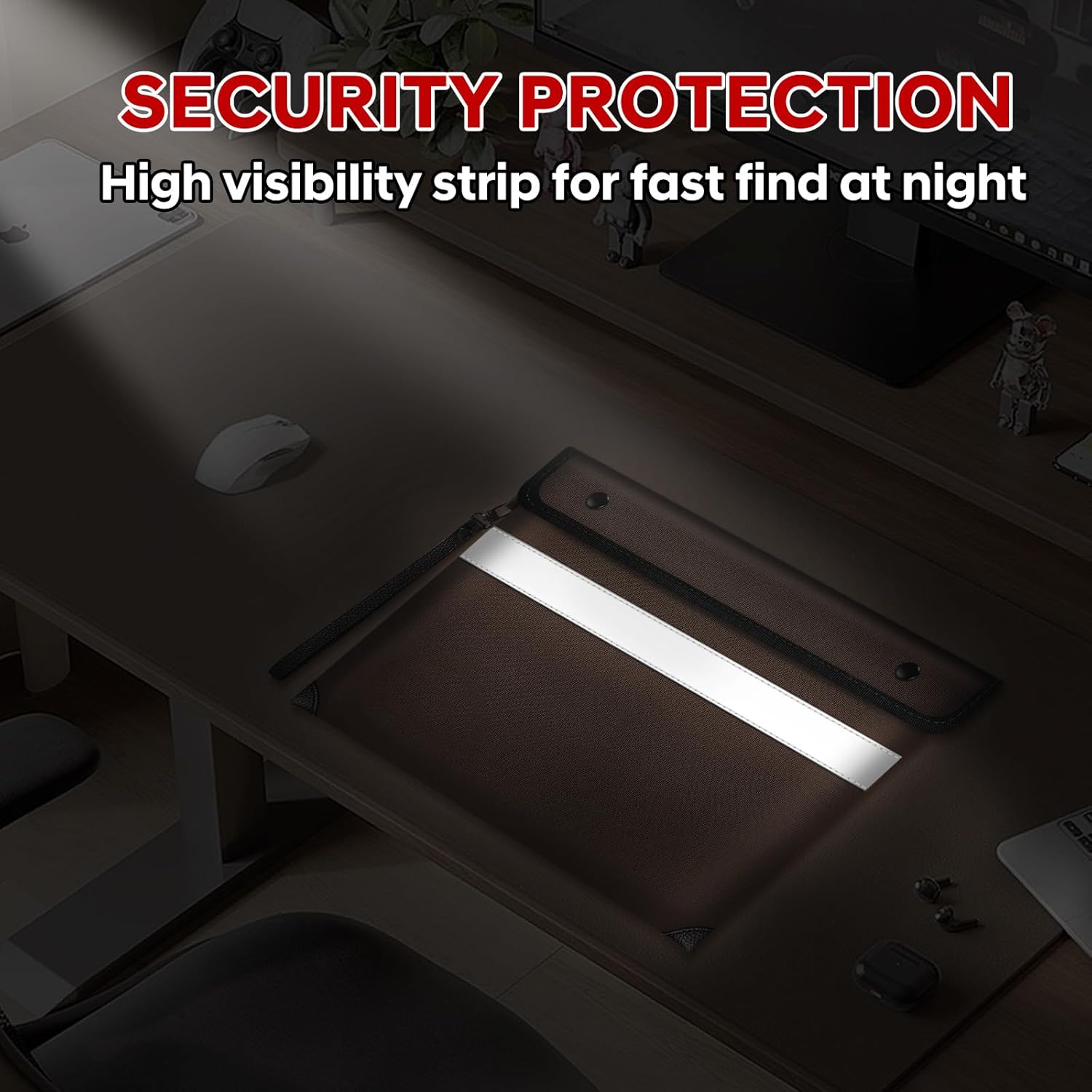 Fireproof Bag for Documents (11 x 7.7 inch)-5200 Heat Insulated, Waterproof Document Pouch with Double-Sided Reflective Strip, Money Bag for Cash (Brown)
