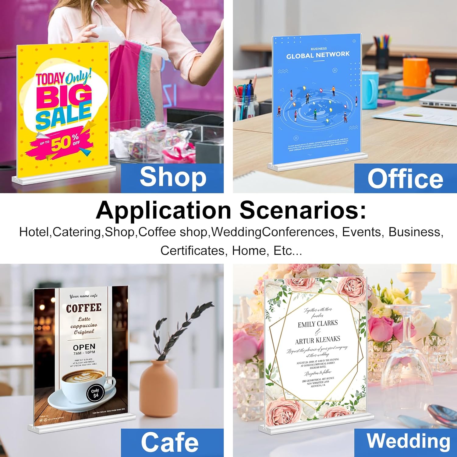 - [Wide Uses] Our 12 Pack acrylic sign holder 8.5x11 are very suitable for restaurants, trade shows, reception areas, schools, weddings, exhibitions, etc.