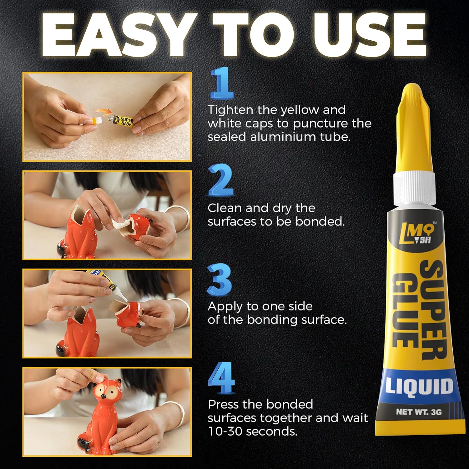 - 🏠 Multi-Surface Adhesive: This CA glue works on most materials from plastic toys to ceramic mugs—the only adhesive you'll need for home repairs. Its versatile formula creates strong bonds on plastic, wood, metal, glass, and shoes, eliminating the need for multiple specialized glues.