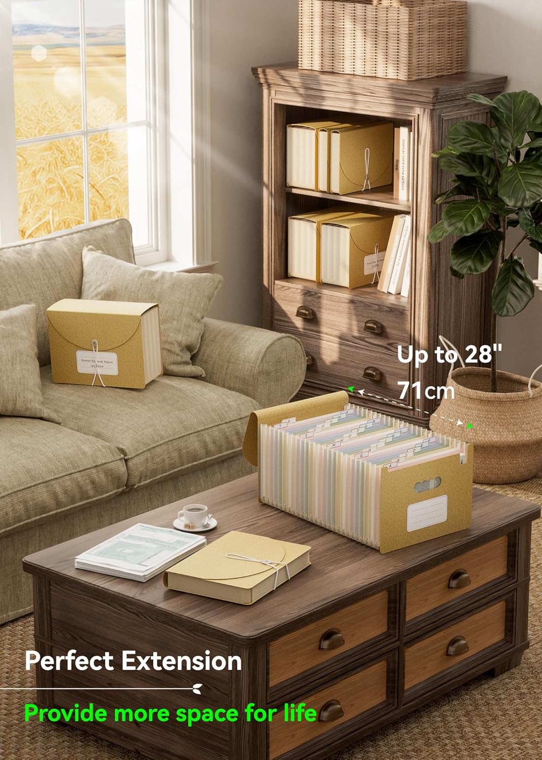 - 【Perfect Expansion】The accordion design ensures ample expansion space during use, allowing for more files to be stored, and can be compressed and secured with elastic bands when not in use, providing more space for life and increasing convenience. The flexible cover and two elastic bands ensure that the folder closes securely, no matter how many files are inside.
