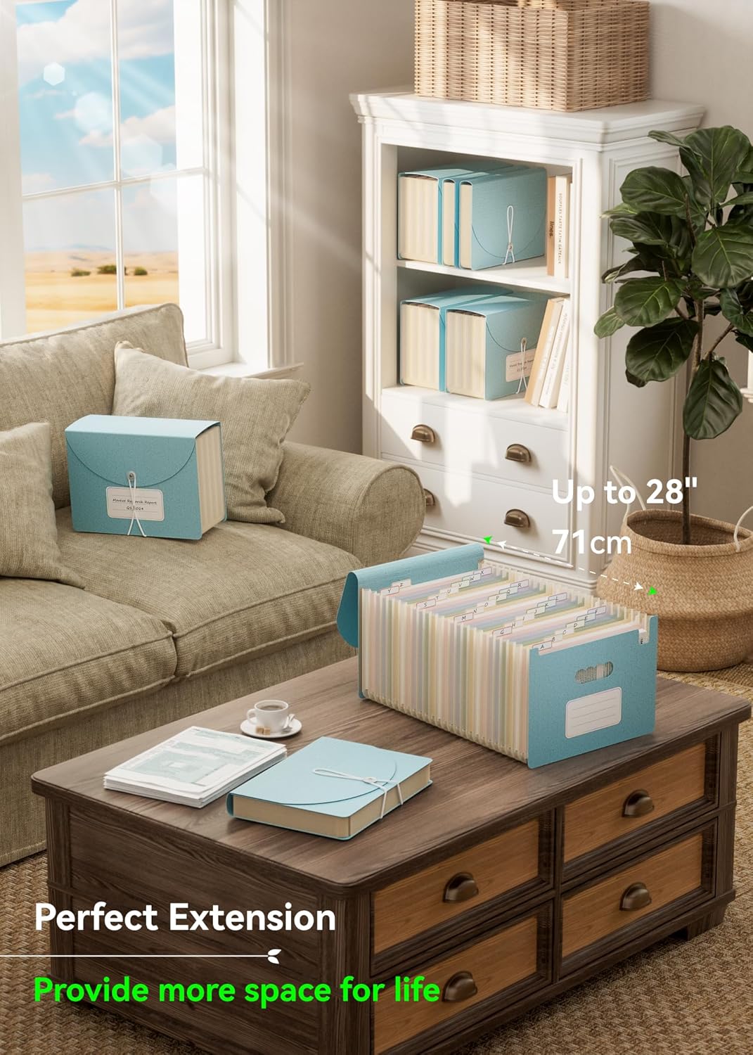 Accordion File Organizer, 26 Pockets Wheat Straw Expanding File Folder, Monthly Bill Receipt Organizer, A-Z Tabs, 100% BPA Free, Return to Nature, Healthy Living, Letter/A4 Size - Sky Blue