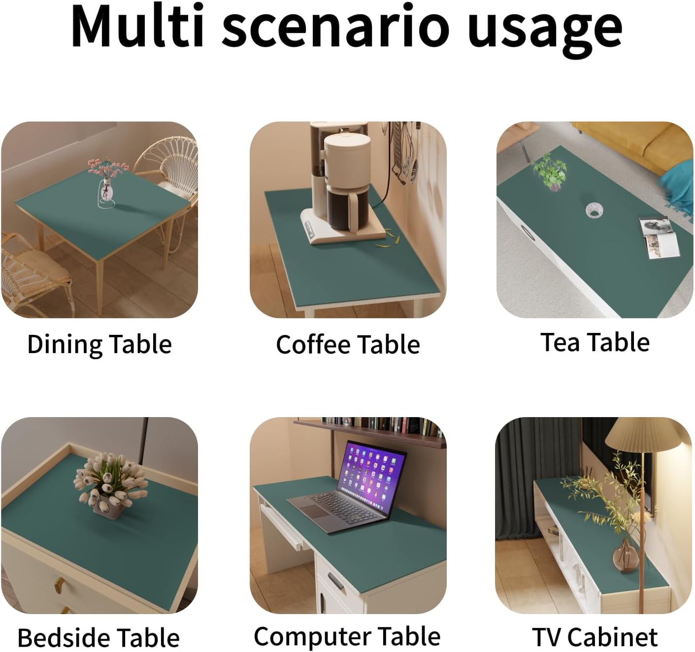 - Safe Material:The Desk Mat is made of faux leather(Non genuine leather)material,Non toxic odorless.The opacity of the product can effectively conceal flaws on the surface of furniture and tabletops.The product has a thickness of 1.8mm, with a soft and durable texture that can effectively cushion the collision between tableware and tabletop.it shields furniture from scratches, scuffs, stains, spills, and damage.