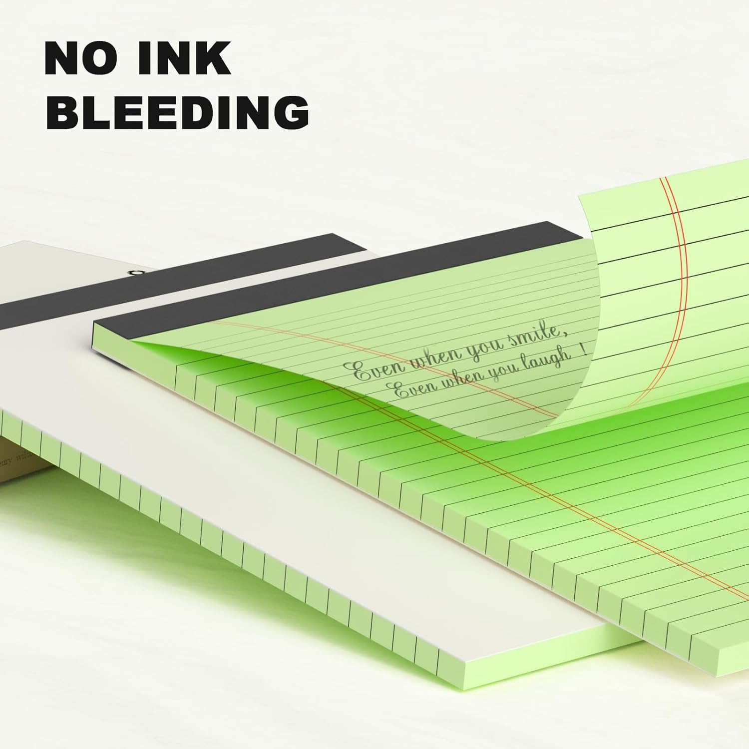 - Green colored Legal Pads 5 x 8 Inch are perfect for students, teachers, and professionals. Made with premium 80gsm thick paper, these notepads provide a luxurious writing experience. The colored paper resists ink bleeding, while the black lines and double red margin lines offer ample space for your notes.