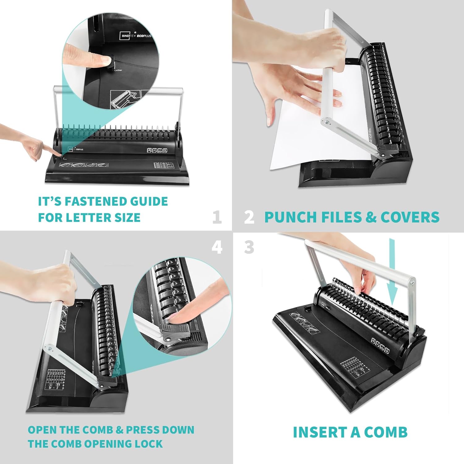 - 【Easy to Use, Just Punch and Bind】The comb binding machine features a dual-functional handle, allowing you to punch and bind in the one machine. (Punch Paper at Least 6 Times to Remove Oil.) This not only saves you time and energy but also make it effortless to create professional-looking bound books at home or in the office. Whether it's reports, manuals, or presentations, this comb binding machine is perfect for all your binding needs.