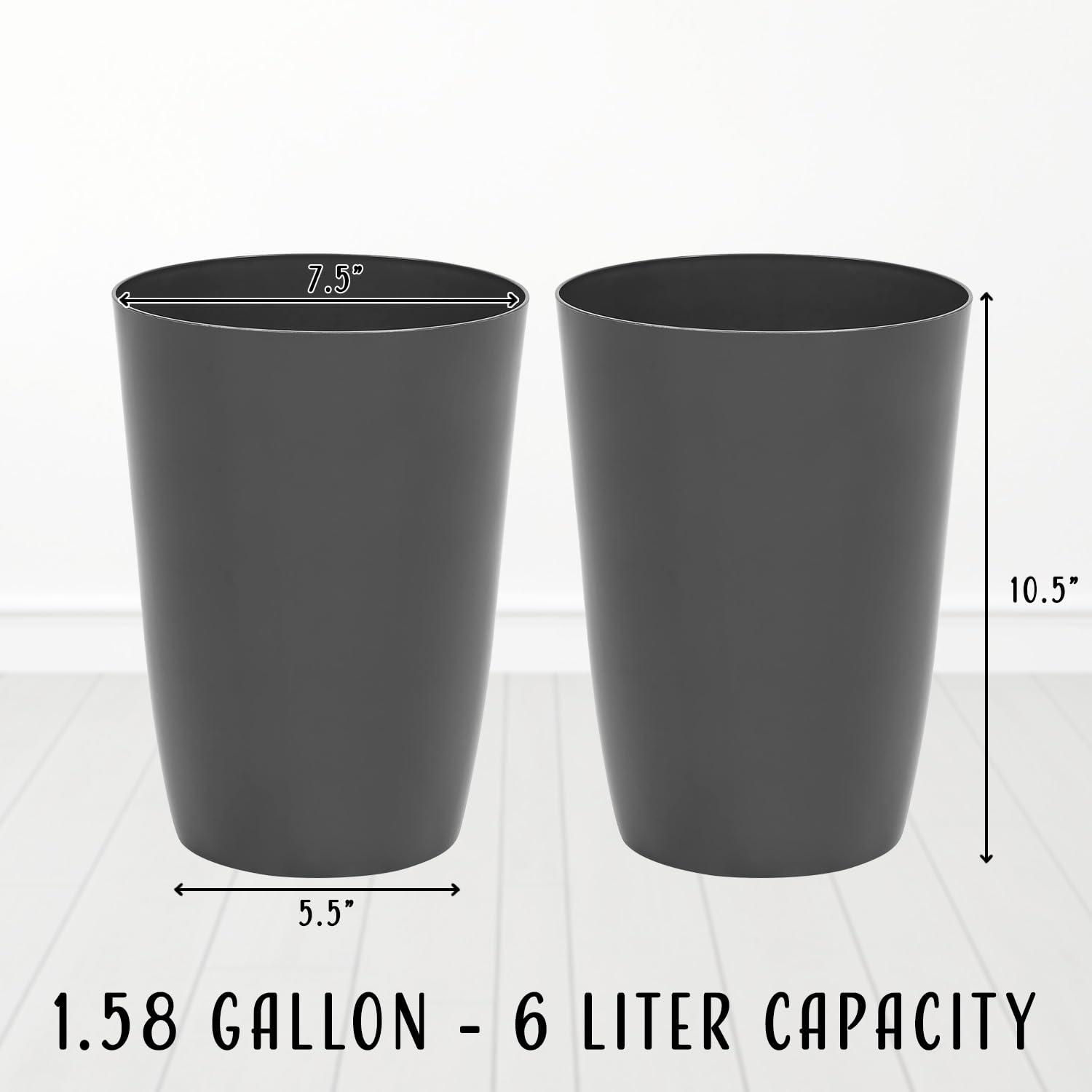 HOLDN’ STORAGE Small Trash Can - Set of 2 Open Top Waste Bin of 1.58 Gallon, Compact Waste Can Perfect for Bathroom, Kitchen, Office, Dorm - Durable Garbage Can - Gray