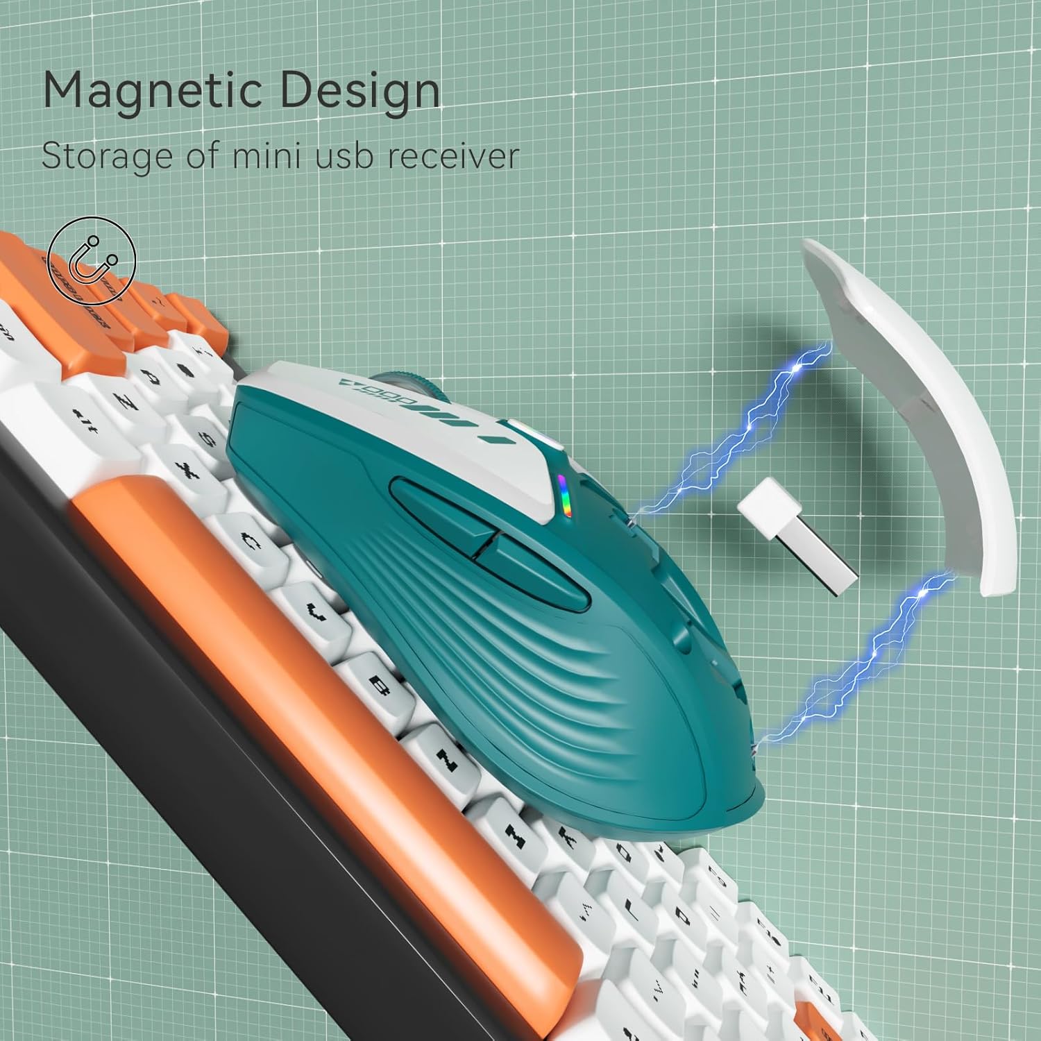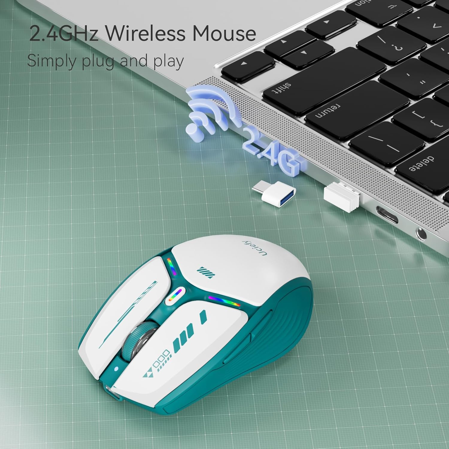 Uciefy V19 Wireless Mouse, 2.4GHz Rechargeable Mouse LED with Battery Indicator, Magnetic Computer Mice with USB Receiver & Type-C Adapter for Laptop/PC/Mac/Chromebook - Green