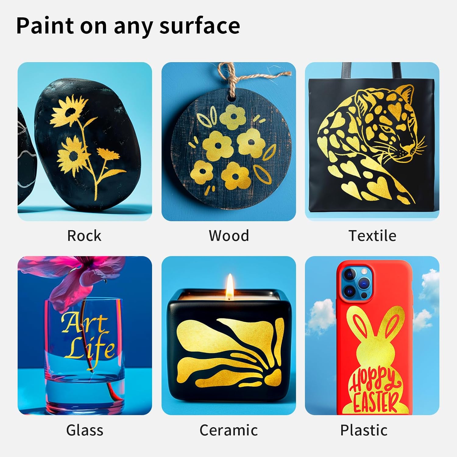 - PREMIUM QUALITY: This gold-pack of paint pens features high-quality acrylic paint and a durable nib that dries opaque, so you don’t have to make a second layer! The gold permanent paint marker is acid-free, waterproof and wear resistant. It’s a great tool for art projects, DIY crafts, coloring, greeting cards, poster making, painting, highlighting.