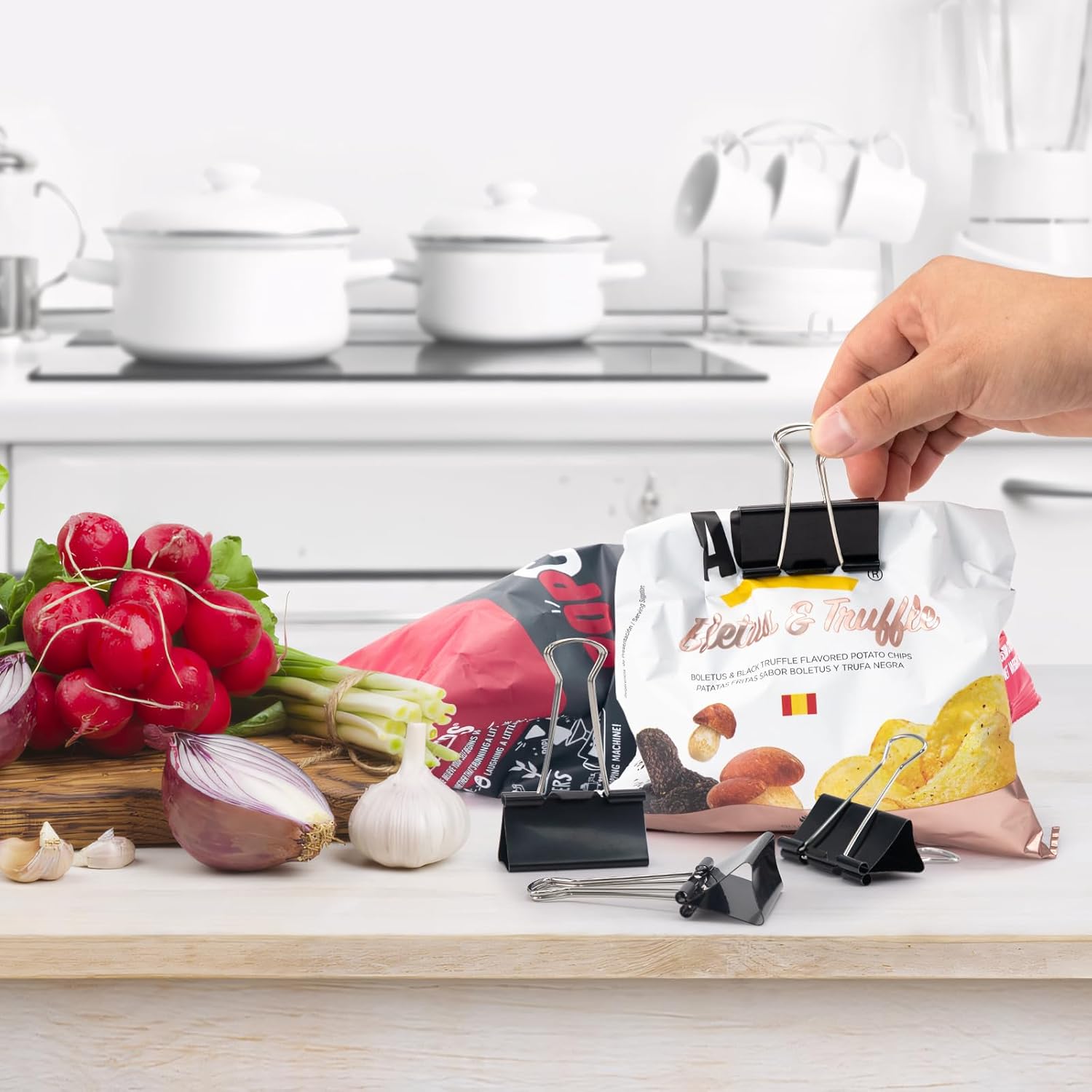 - Binder clips are ideal keeping organized of large stacks of loose paper securely fastened together and keep all foods air closed for office, home, school and crafts