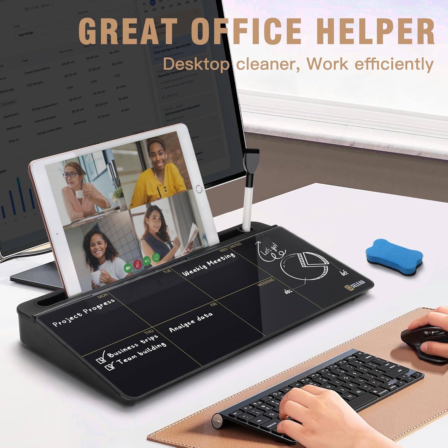 - 💯MULTIFUNCTIONAL: Writing+Storage+Hold+Keyboard Stand, our desktop white board is an all in one multipurpose. Equipped with 2 white dry erase markers and 1 blue eraser. One purchase, All in place!