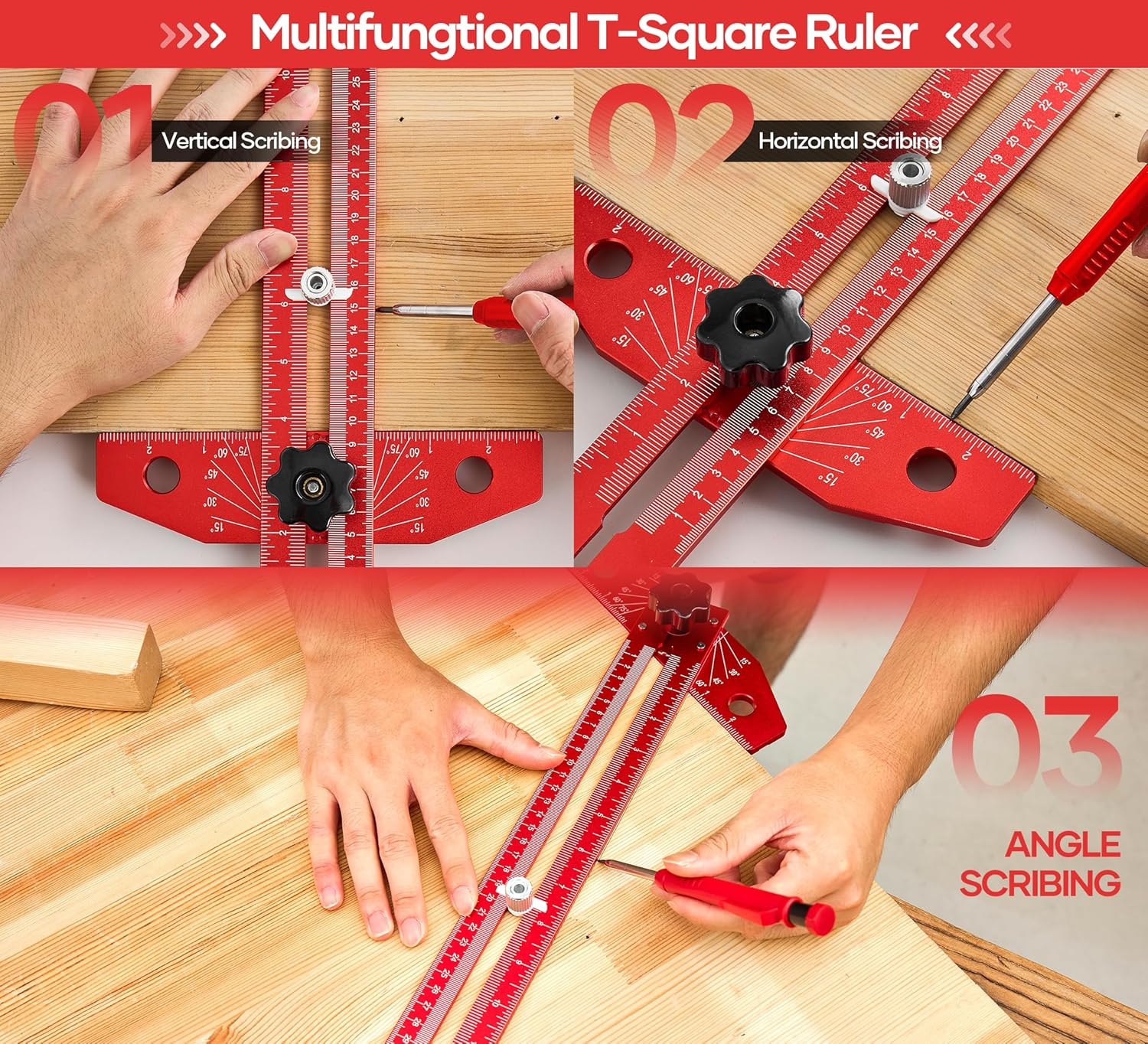 Saker Woodworking Scriber Marking Line Ruler, Adjustable Aluminum Alloy Sliding T-Square Ruler,Precision Line Drawing aid Ruler with Angle Adjustment Scale