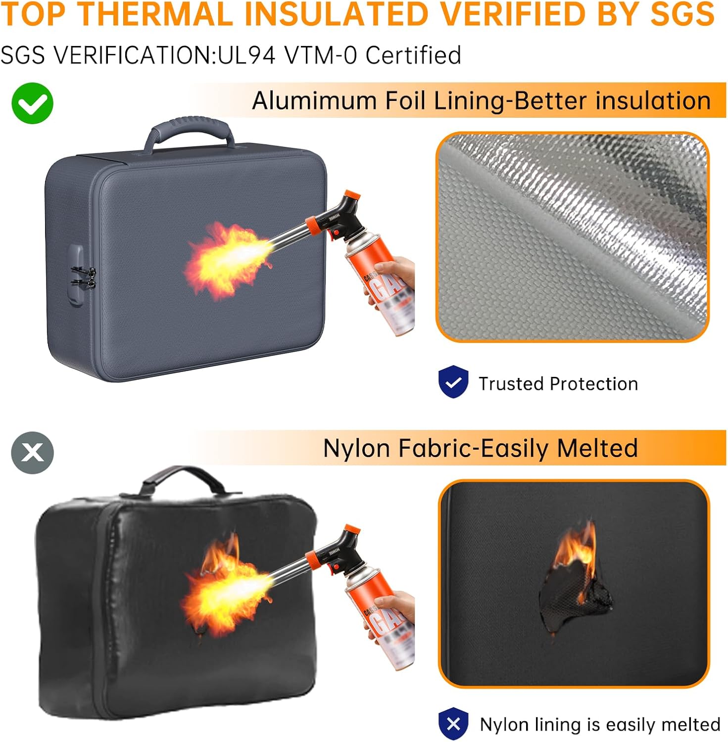 - 5200°F Fireproof & Water-resistant safe: The Upgraded important document organizer is made of thickened silicone coated fireproof cotton material and aluminum foil which withstand the temperature up to 5200℉(double safe protection). Aluminum foil lining isn’t easily melt under high temperature after several tests. It has been passed by SGS TEST(UL94 VTM-0 Certified).The bag is fireproof&Water-resistant, which can effectively protect your important documents in a fire, flood, and wet weather