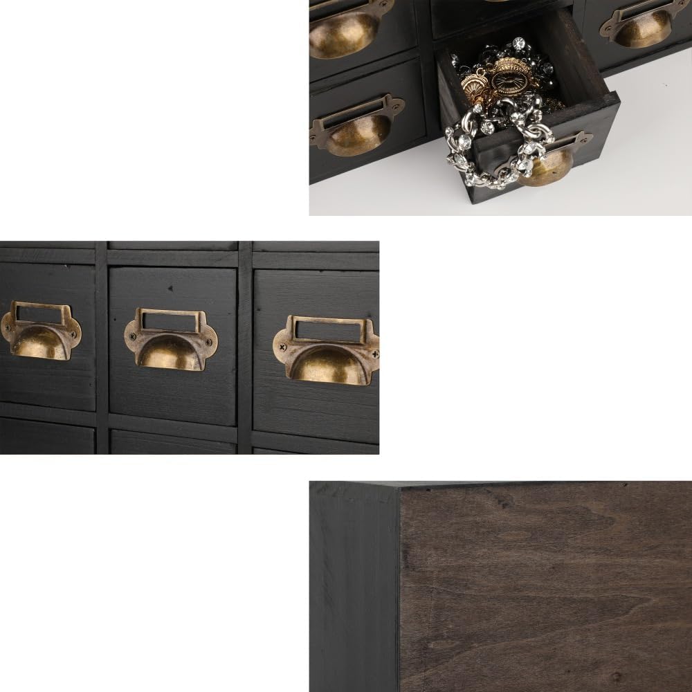Apothecary Drawers Card Catalog Cabinet with 14 Drawers Wooden Card Catalog Wooden Storage Box for Desktop Organizer (Black)